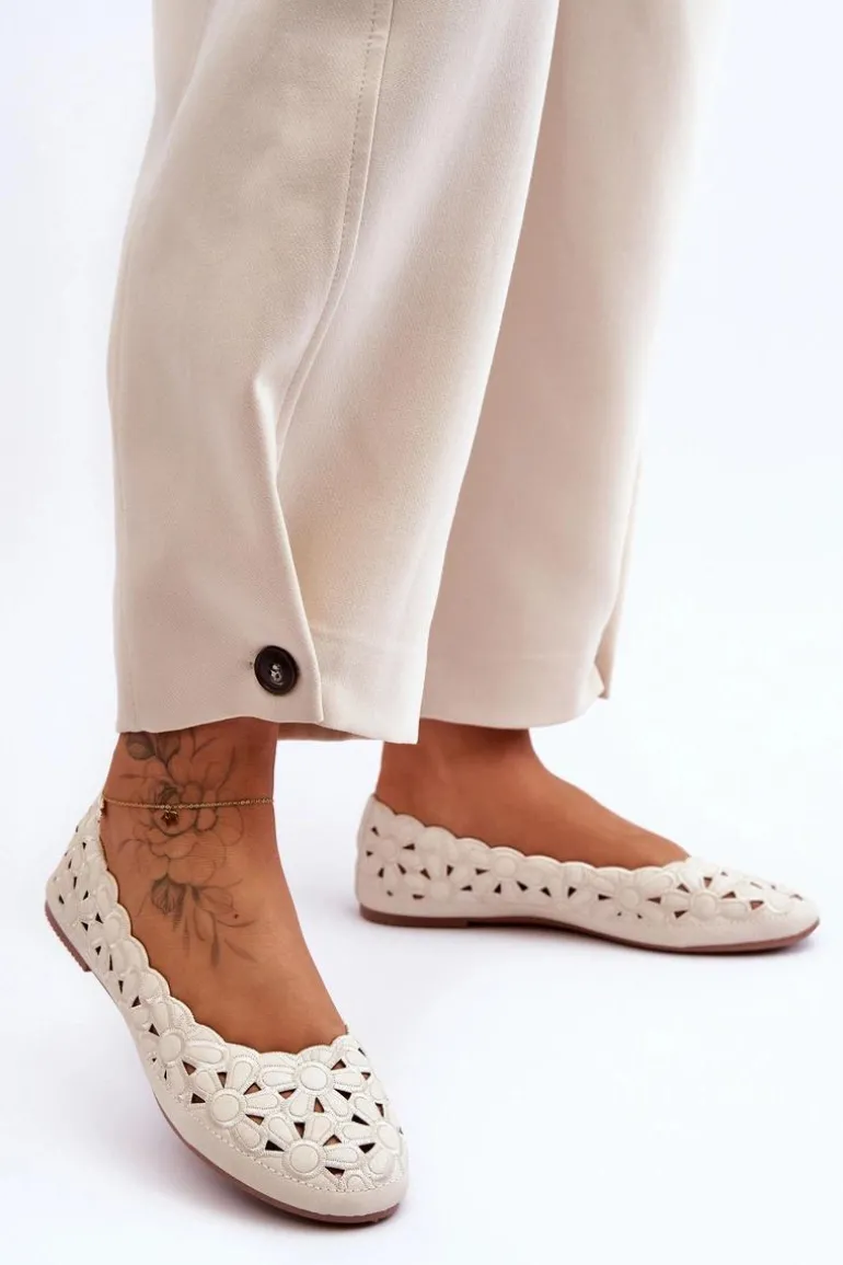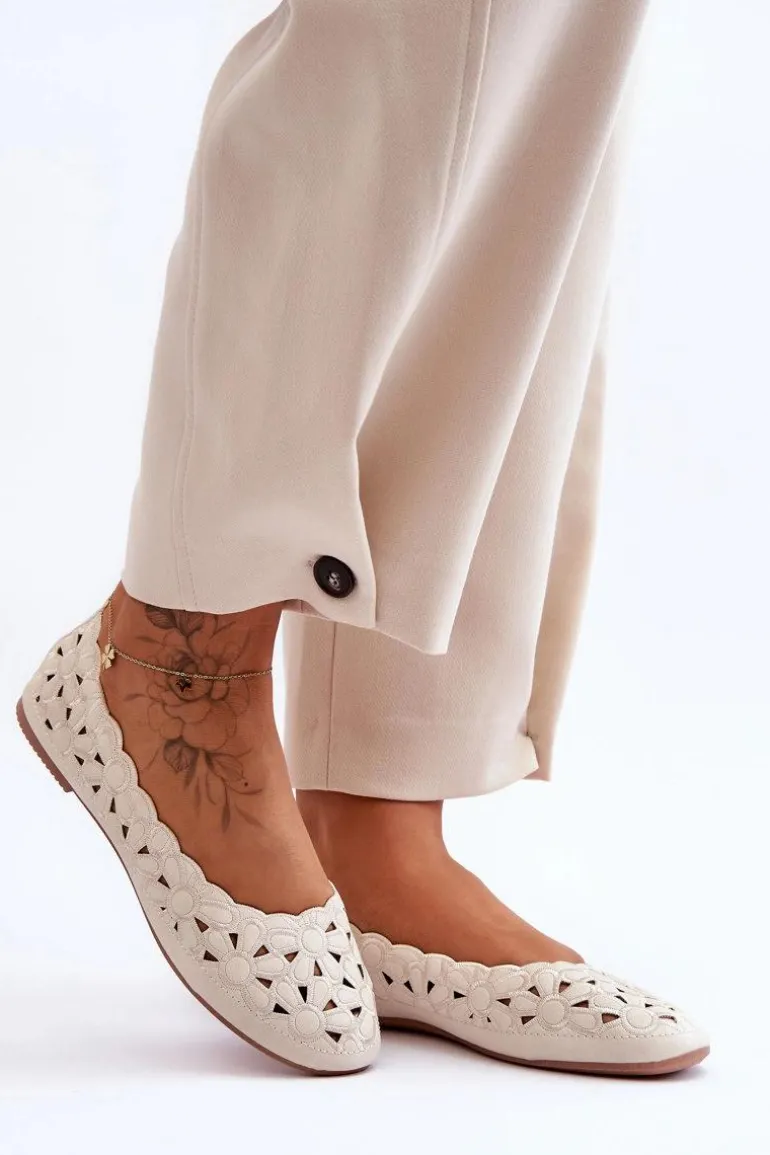 Ażurowe Błyszczące Baleriny Damskie Beżowe Visionary