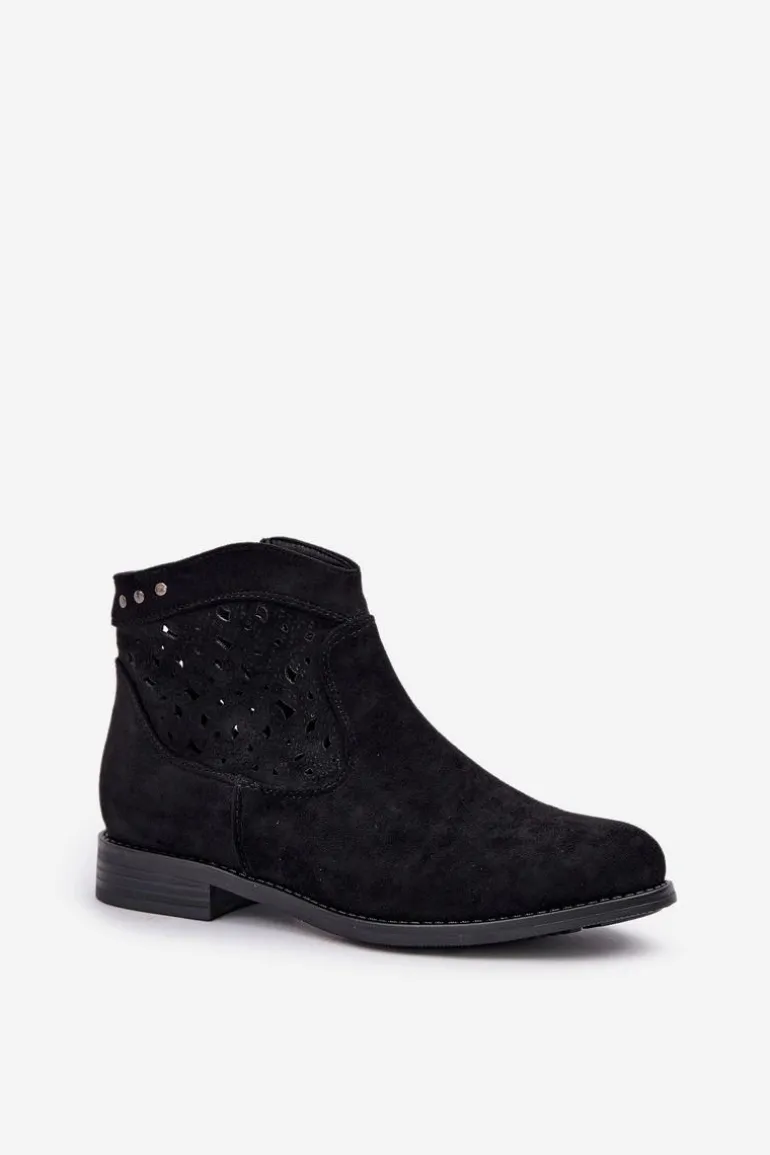 Botki damskie od marki S.Barski, wykonane z eko zamszu, to elegancka i wygodna propozycja na chłodniejsze dni. Osadzone na płaskim obcasie, zapewniają stabilność i komfort przez cały dzień. Zapinane na zamek, co ułatwia ich zakładanie. Zaokrąglone noski dodają im subtelnego charakteru, a ażurowa cholewka nadaje lekkości i nowoczesnego stylu. Te botki to doskonały wybór do codziennych stylizacji! Przy wyborze rozmiaru prosimy sugerować się tabelą rozmiarów.