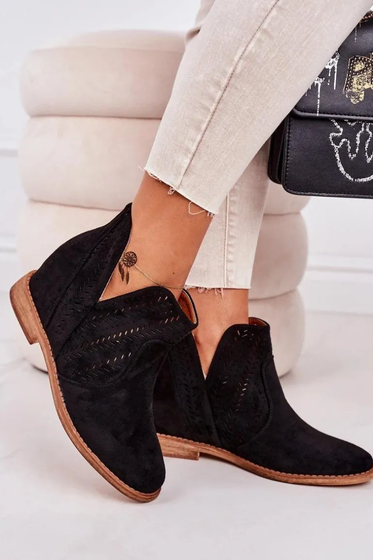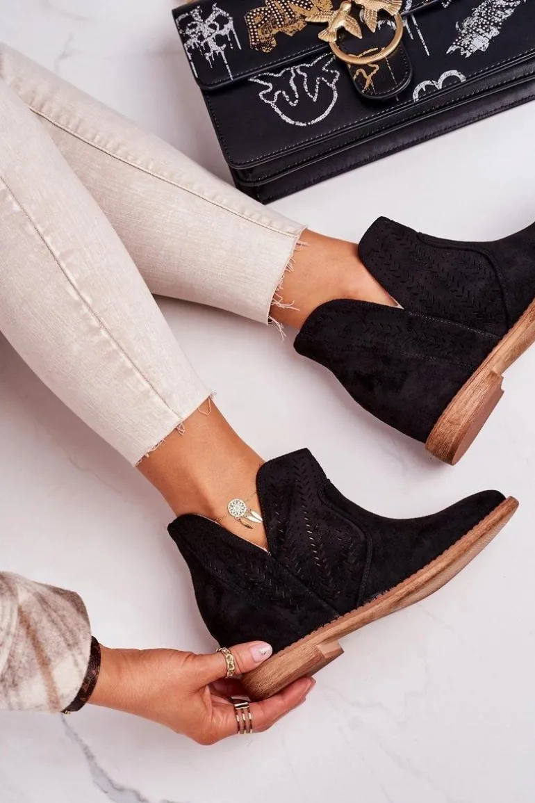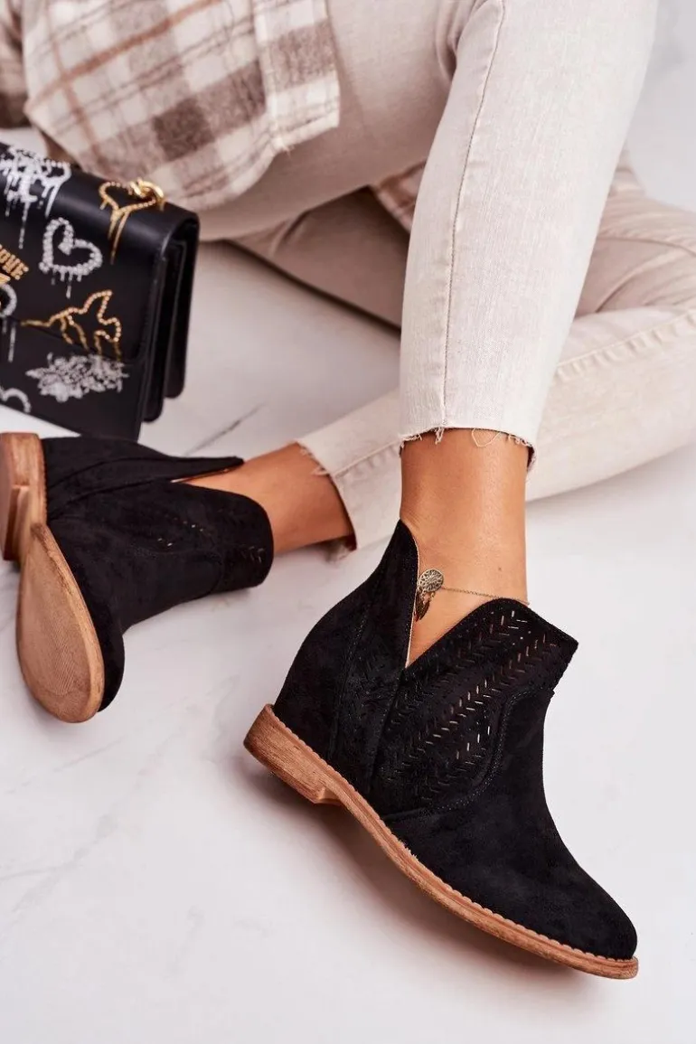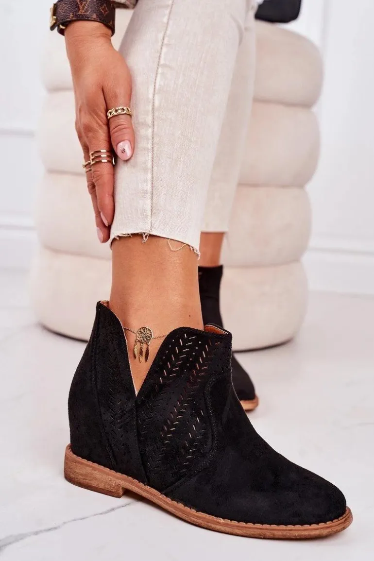 Wiosenne ażurowe botki na ukrytym koturnie. Buty wykonane są z eko zamszu. Botki są bardzo wygodne dzięki miękkiej wkładce ze skóry naturalnej. Koniecznie sprawdź całą naszą kolekcję damskich botków!