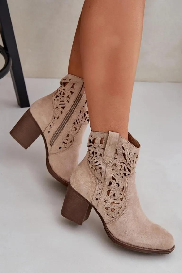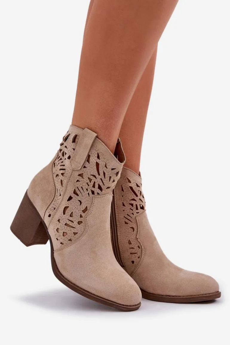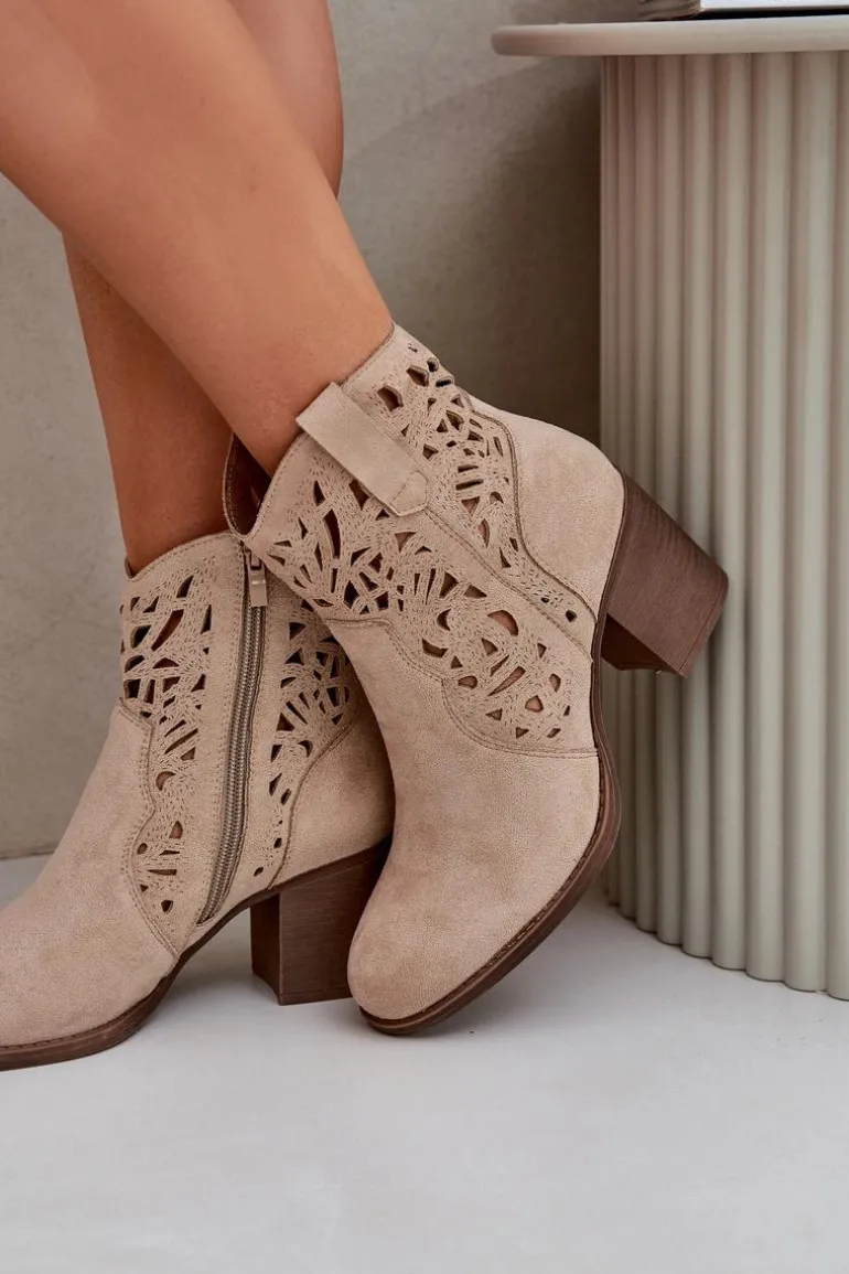 Botki od marki Jezzi to elegancka i komfortowa propozycja na każdą okazję. Osadzone na słupkowym obcasie, zapewniają stabilność i wygodę. Zaokrąglone noski nadają im subtelnego charakteru, a ażurowa cholewka wprowadza lekkość i nowoczesny wygląd. Zapinane na zamek, co ułatwia zakładanie i zdejmowanie. Te botki będą doskonałym wyborem do codziennych, jak i bardziej eleganckich stylizacji! Przy wyborze rozmiaru prosimy sugerować się tabelą rozmiarów.