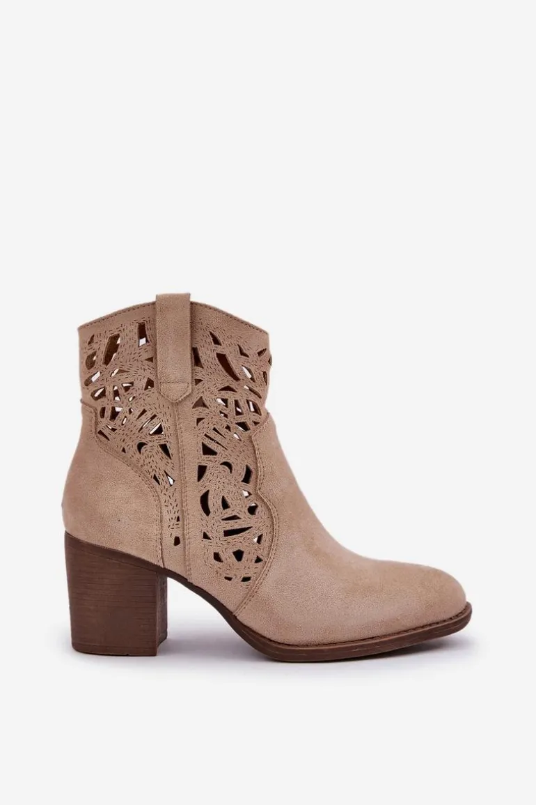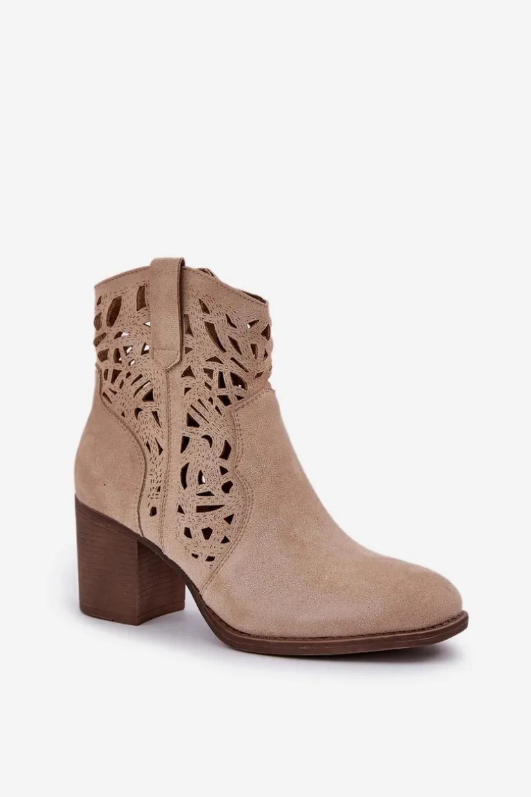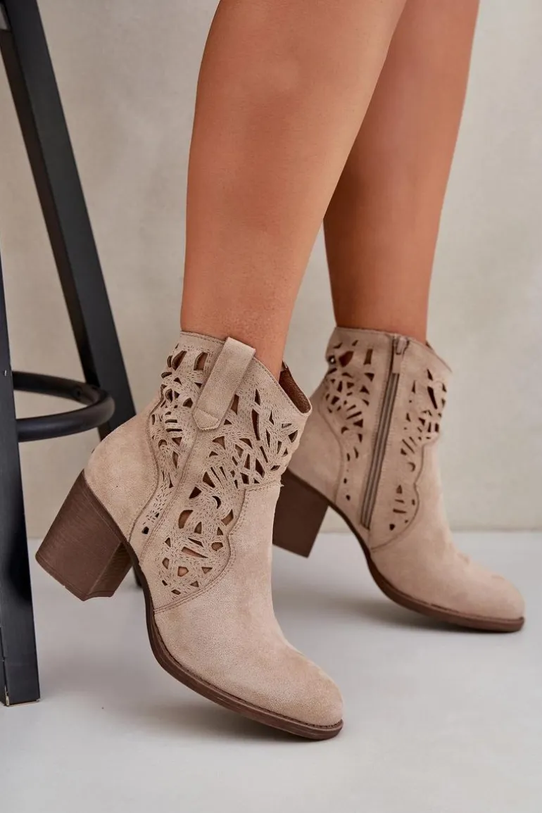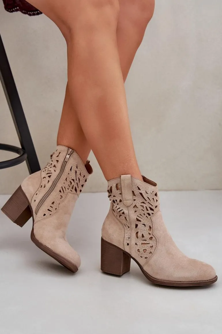 Botki od marki Jezzi to elegancka i komfortowa propozycja na każdą okazję. Osadzone na słupkowym obcasie, zapewniają stabilność i wygodę. Zaokrąglone noski nadają im subtelnego charakteru, a ażurowa cholewka wprowadza lekkość i nowoczesny wygląd. Zapinane na zamek, co ułatwia zakładanie i zdejmowanie. Te botki będą doskonałym wyborem do codziennych, jak i bardziej eleganckich stylizacji! Przy wyborze rozmiaru prosimy sugerować się tabelą rozmiarów.