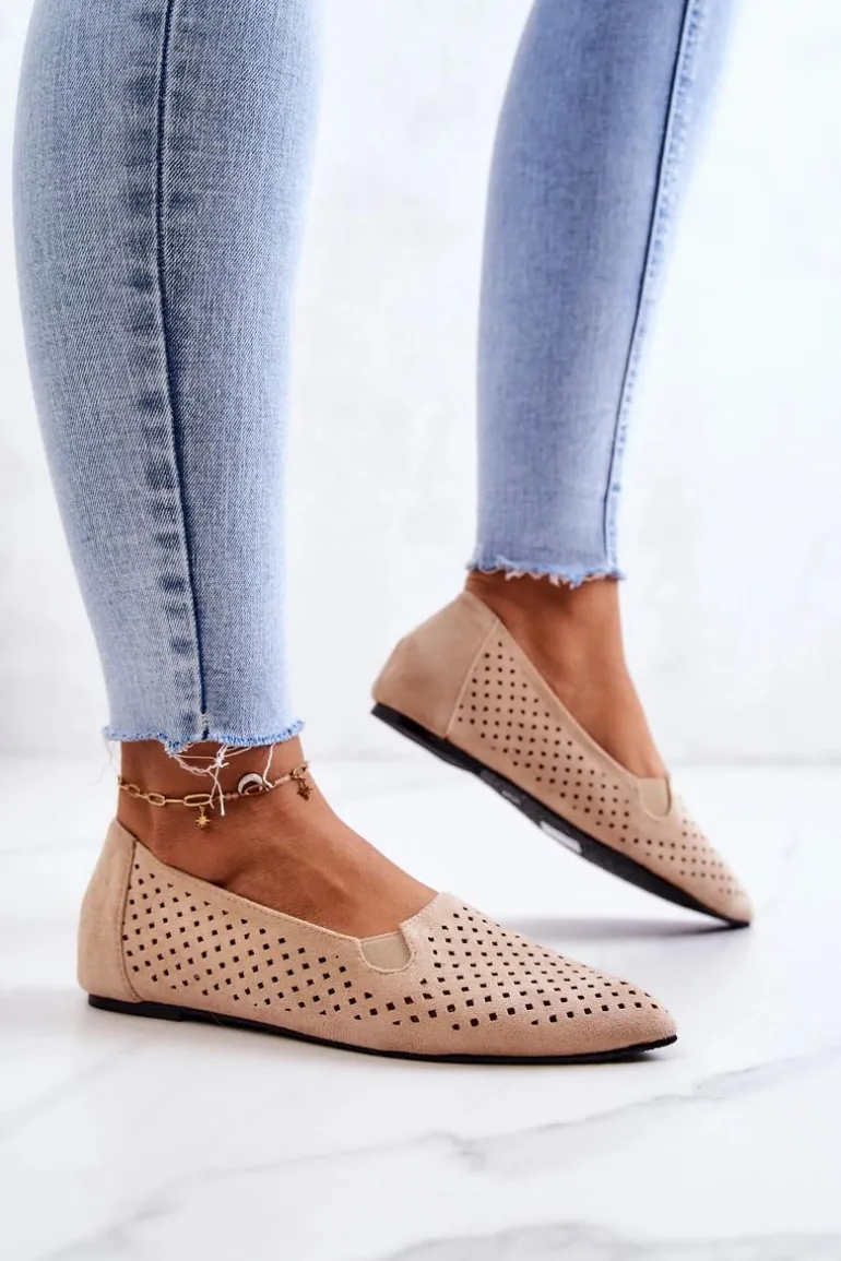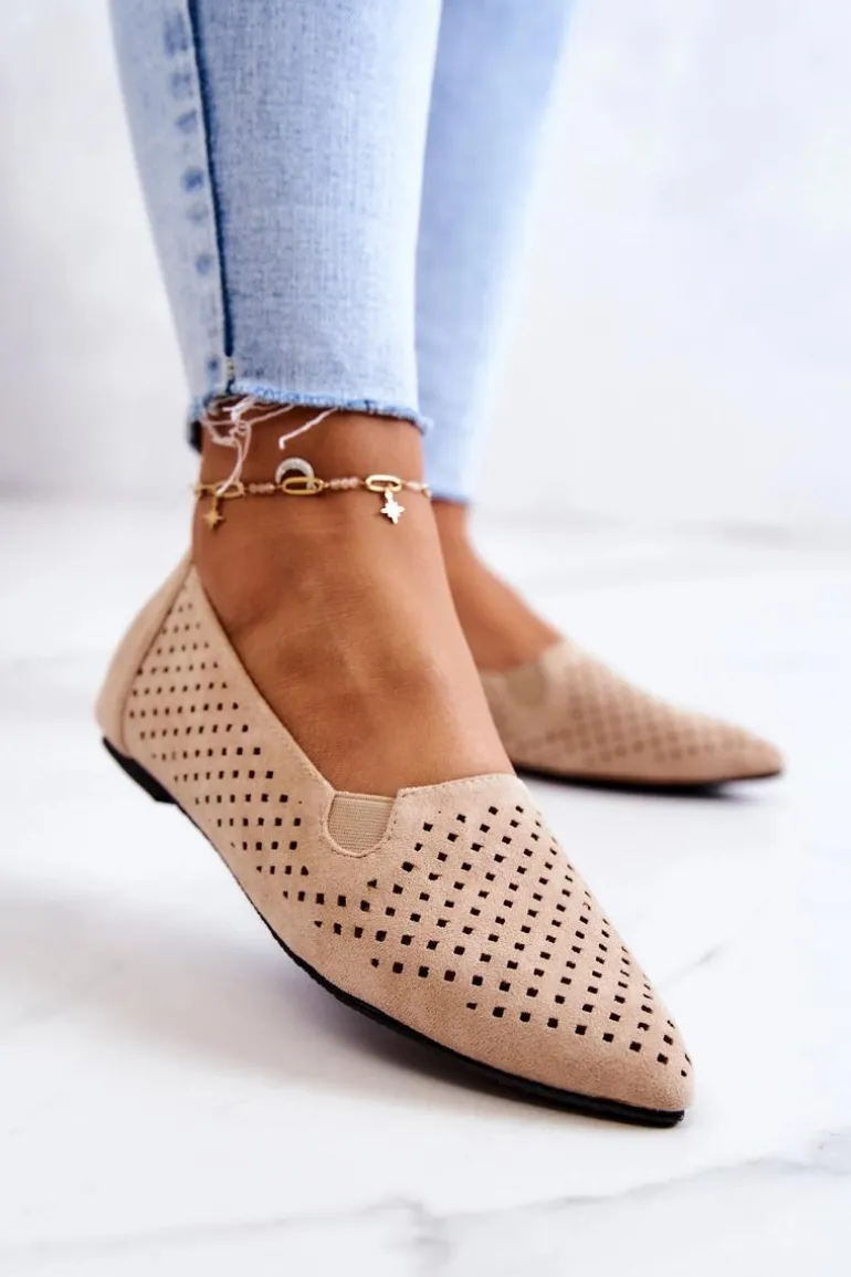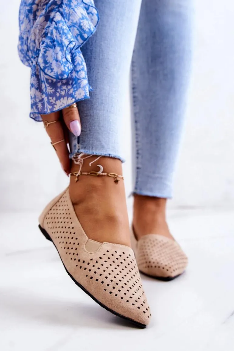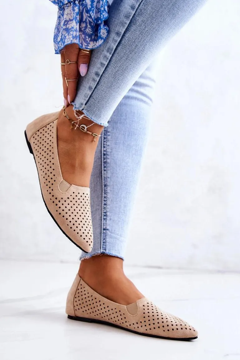 Niezwykłe baleriny dla niezwykłych kobiet! Ażurowy wzór to idealny wybór na wiosenno-letni sezon! Wykonane z eko zamszu. Wkładka wykonana z eko skóry. Model wsuwany. Nosek w szpic. Bardzo wygodne i stylowe, z pewnością spodobają się wszystkim dookoła! Podeszwa wykonana z tworzywa sztucznego. Osadzone na podeszwie z płaskim obcasem. Zapiętek usztywniany. Będą pasować zarówno do casualowych, jak i tych eleganckich stylizacji. Koniecznie te baleriny powinny znaleźć się w Twojej szafie! Przy wyborze rozmiaru prosimy sugerować się tabelą rozmiarów.