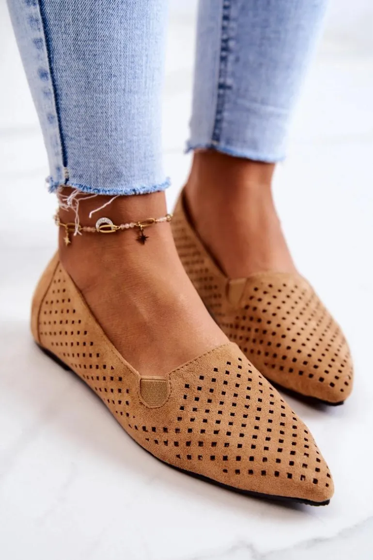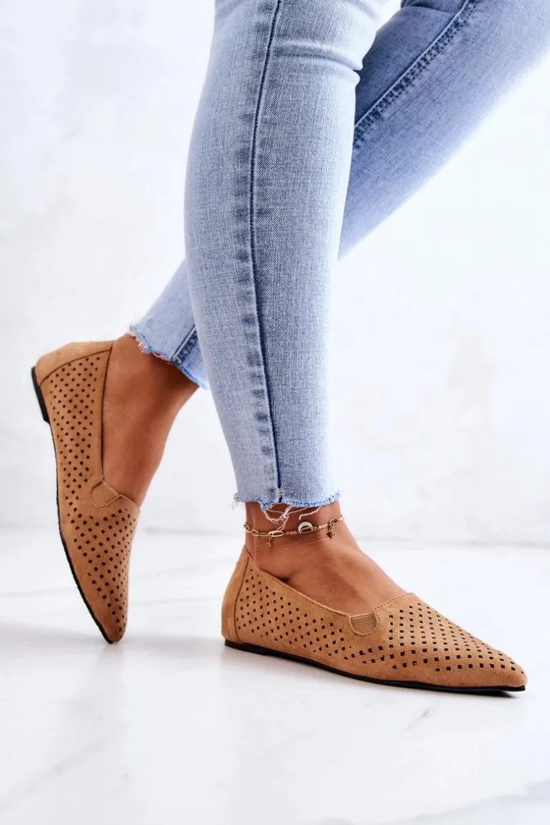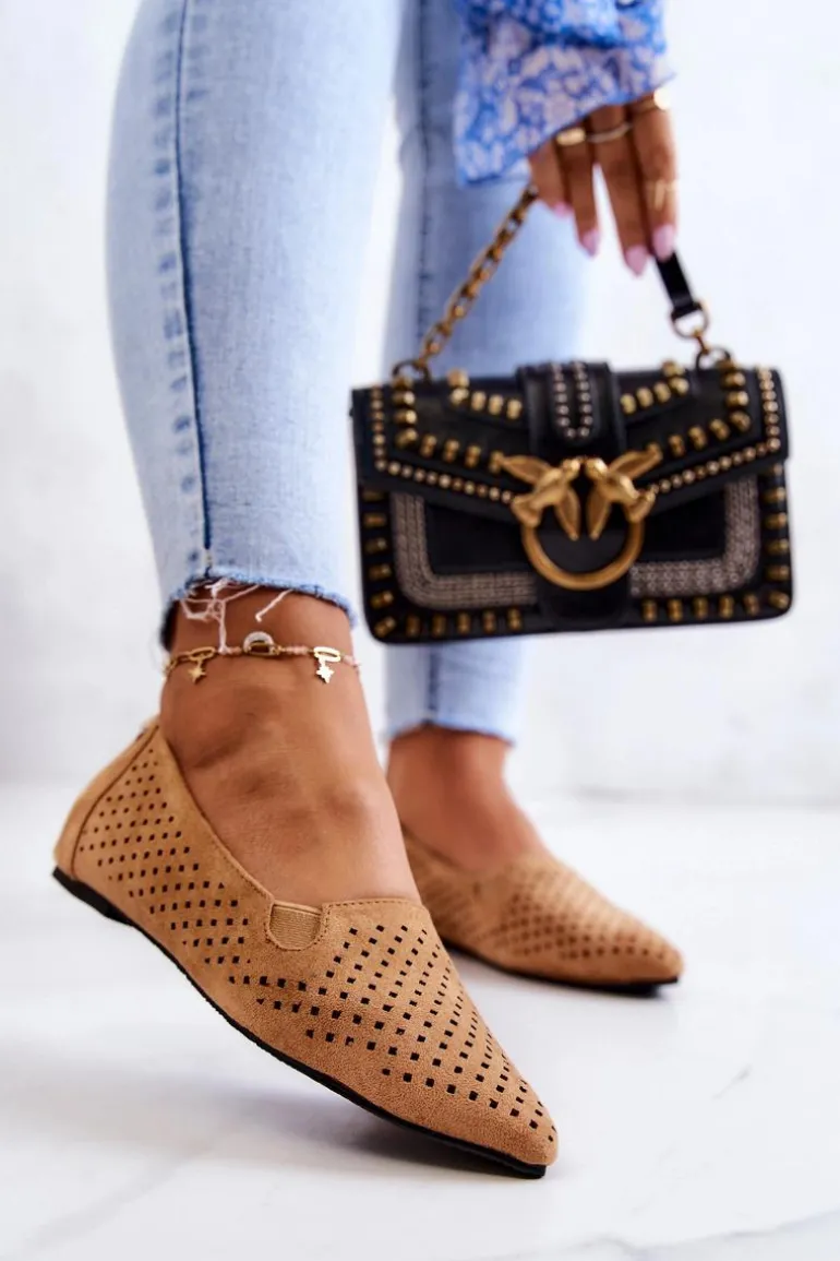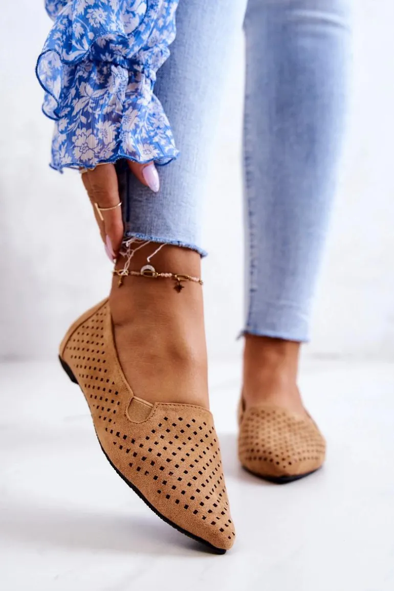 Niezwykłe baleriny dla niezwykłych kobiet! Ażurowy wzór to idealny wybór na wiosenno-letni sezon! Wykonane z eko zamszu. Wkładka wykonana z eko skóry. Model wsuwany. Nosek w szpic. Bardzo wygodne i stylowe, z pewnością spodobają się wszystkim dookoła! Podeszwa wykonana z tworzywa sztucznego. Osadzone na podeszwie z płaskim obcasem. Zapiętek usztywniany. Będą pasować zarówno do casualowych, jak i tych eleganckich stylizacji. Koniecznie te baleriny powinny znaleźć się w Twojej szafie! Przy wyborze rozmiaru prosimy sugerować się tabelą rozmiarów.