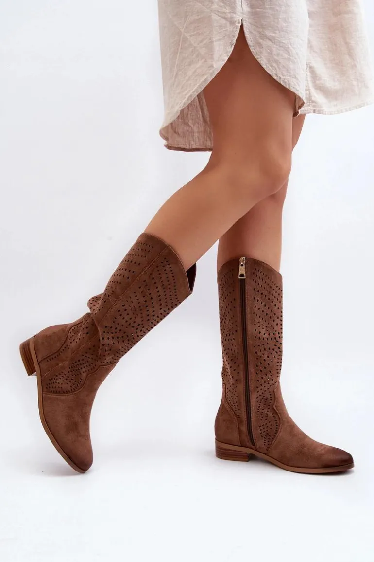 Ażurowe Kozaki Do Połowy Łydki Brązowe Kleorelia