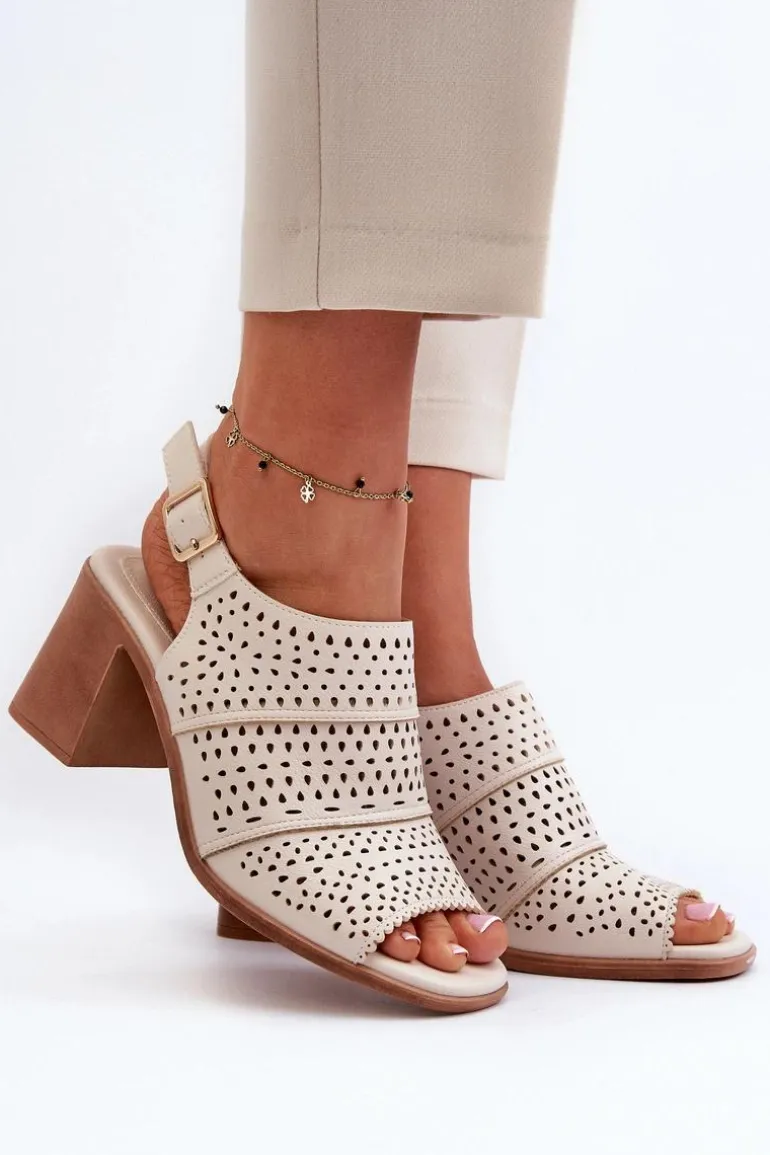 Sandały damskie ażurowe z eko skóry to idealny wybór na letnie dni. Obcas w formie słupka. Zapinane na regulowany pasek ze sprzączką. Doskonale będą pasować zarówno do sukienek, jak i spodni, dodając uroku każdej letniej stylizacji. Przy wyborze rozmiaru prosimy sugerować się tabelą rozmiarów.