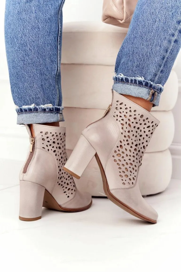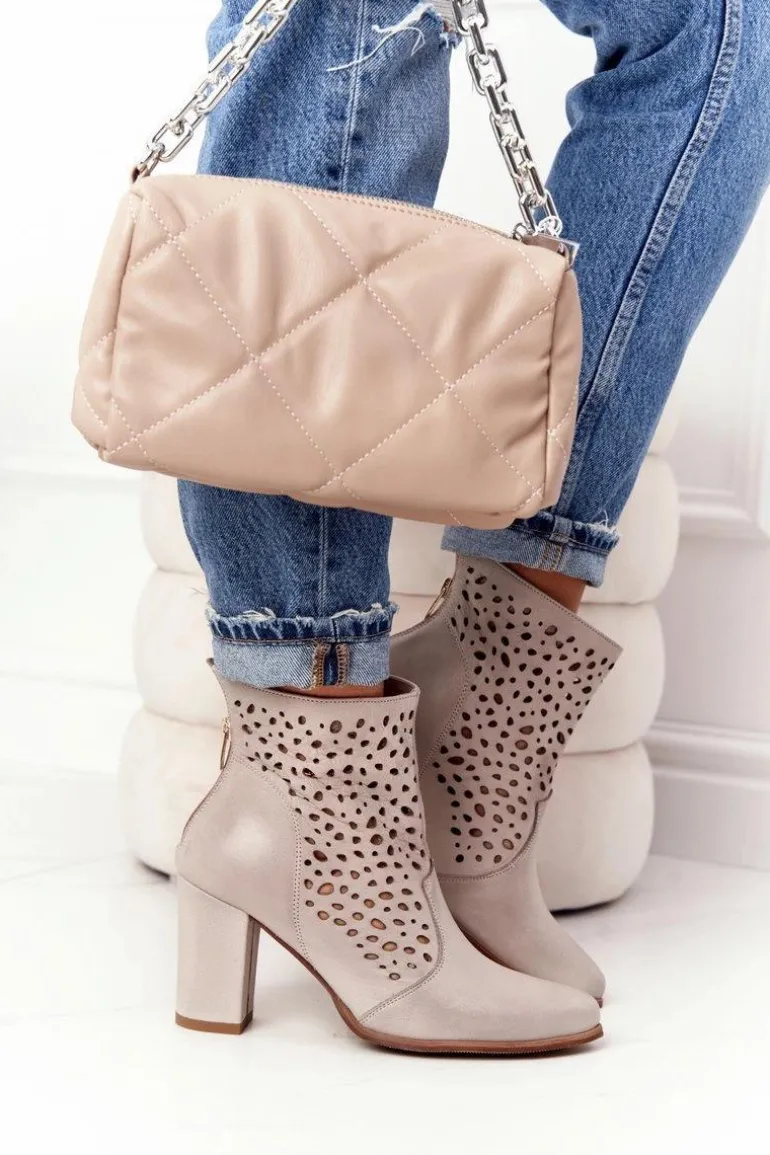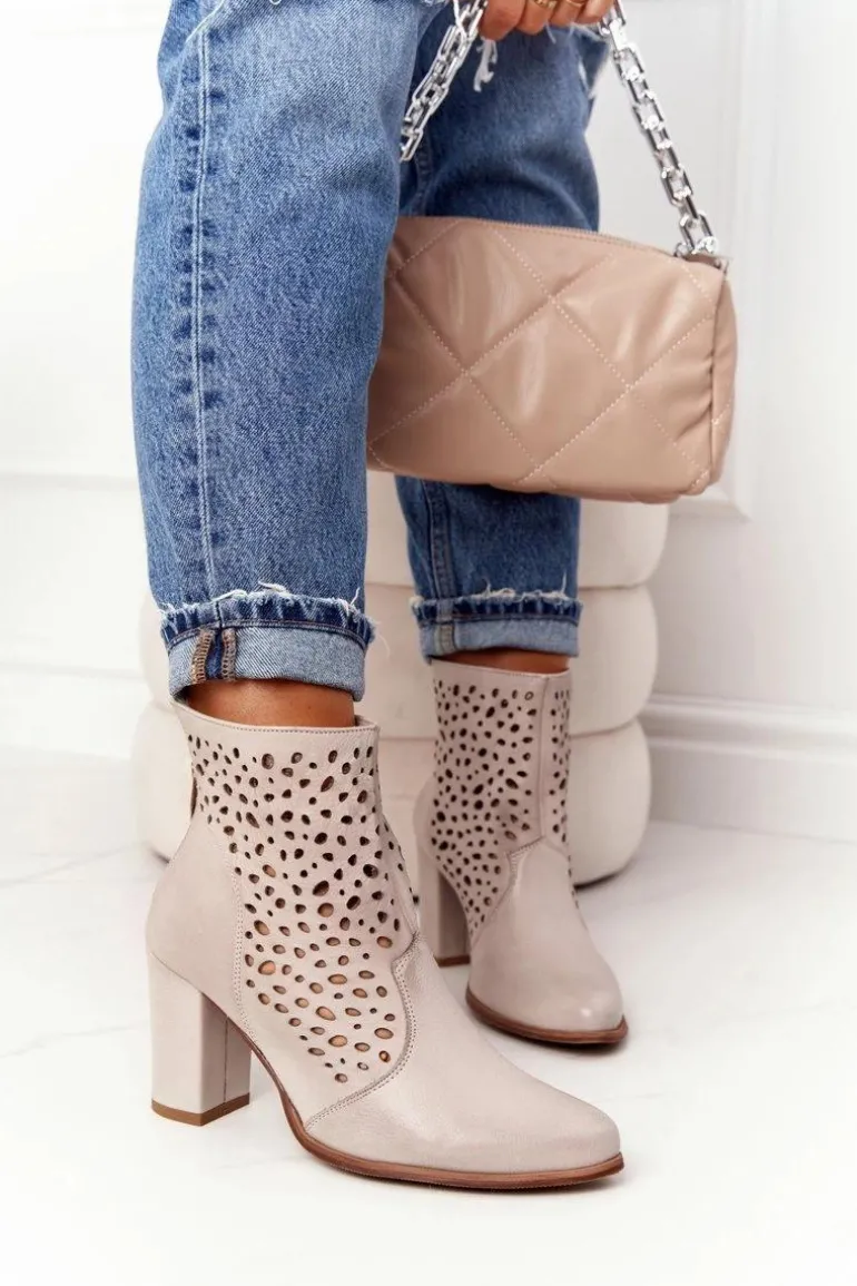 Ażurowe Skórzane Botki Na Słupku Exquisite 1219 Cappuccino