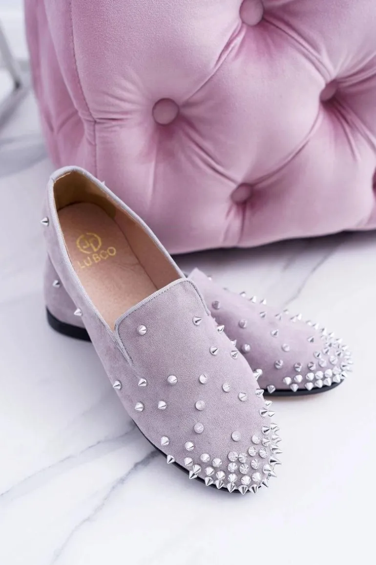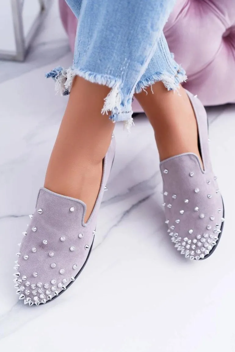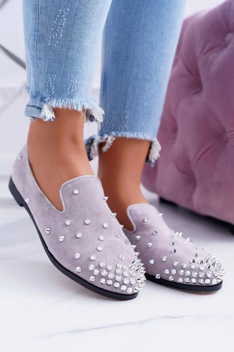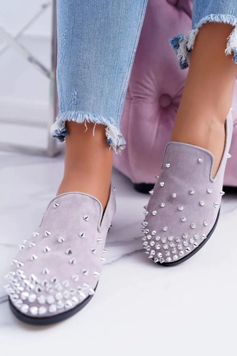 Balerinki Damskie Lu Boo Szare Zamszowe Lordsy z Ćwiekami Odessa