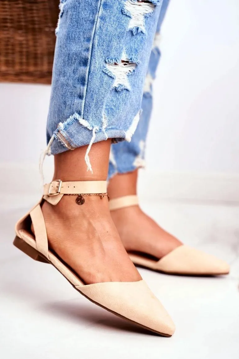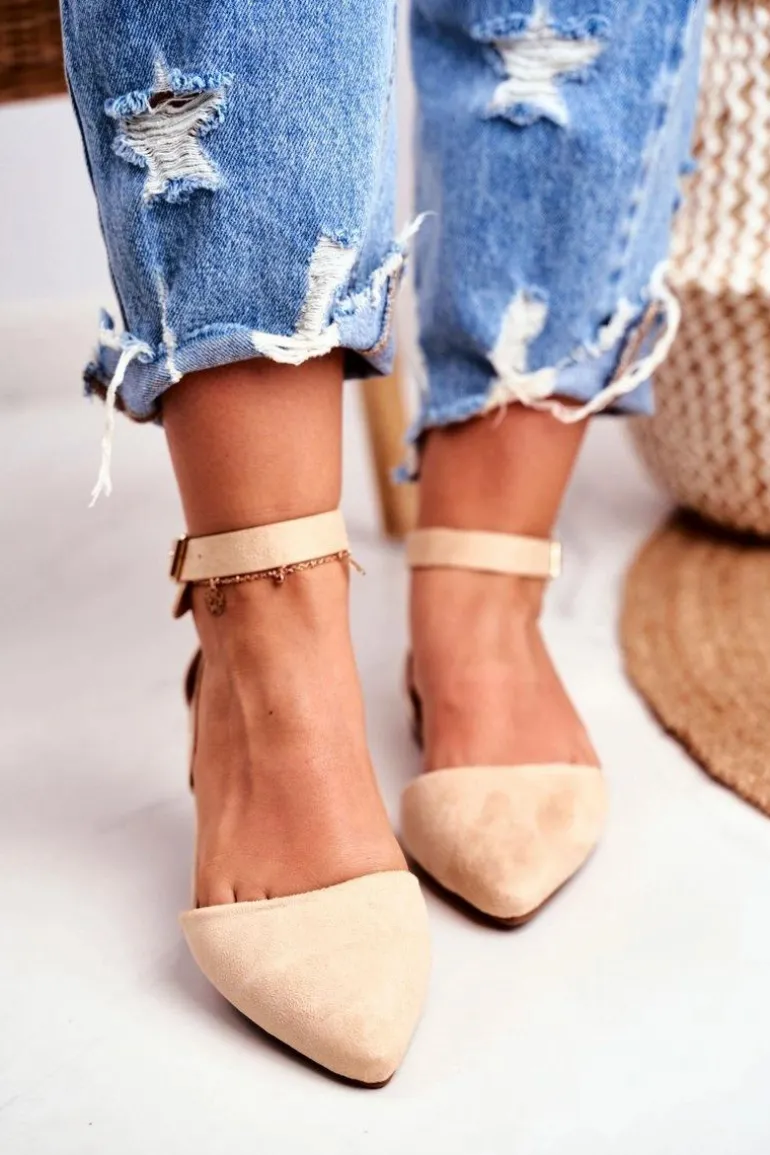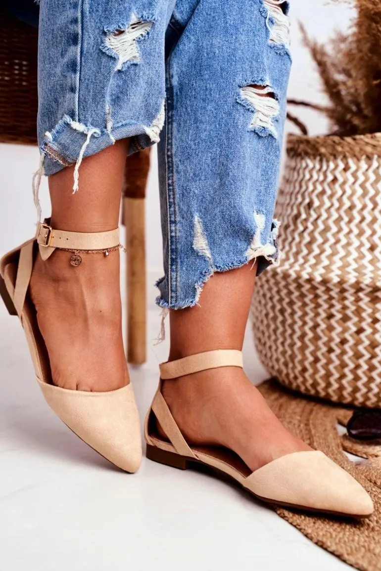Baleriny Damskie Beżowe Na Pasek W Szpic Allison