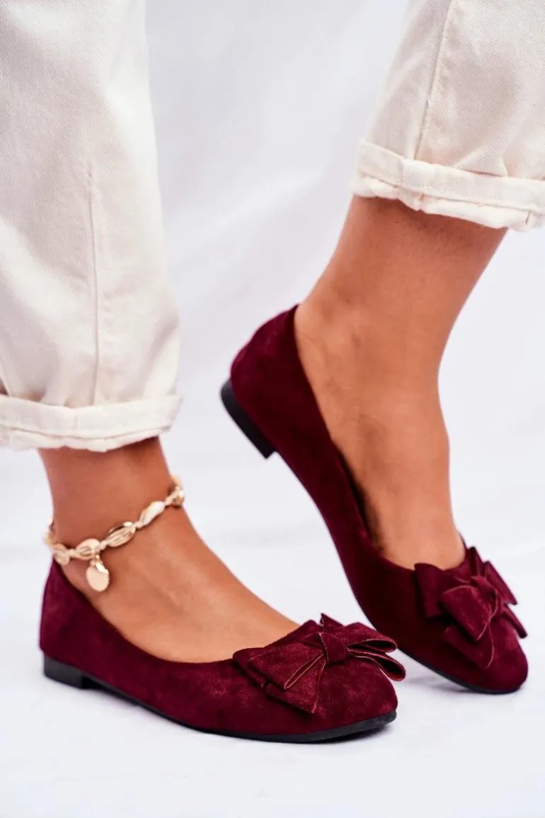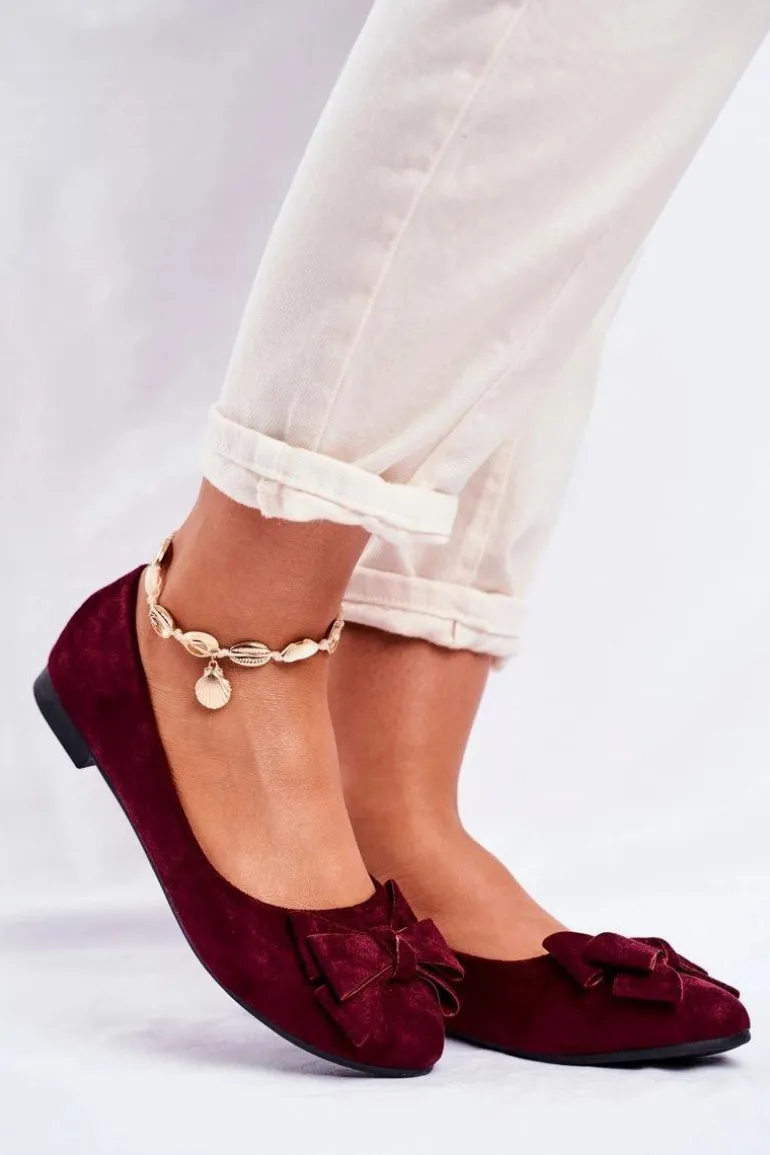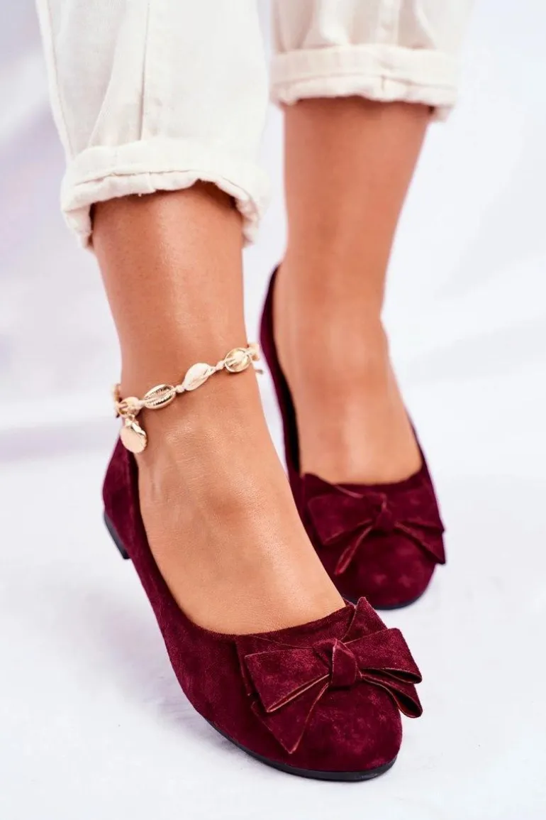 Baleriny Damskie Bordowe Zamszowe Jordos