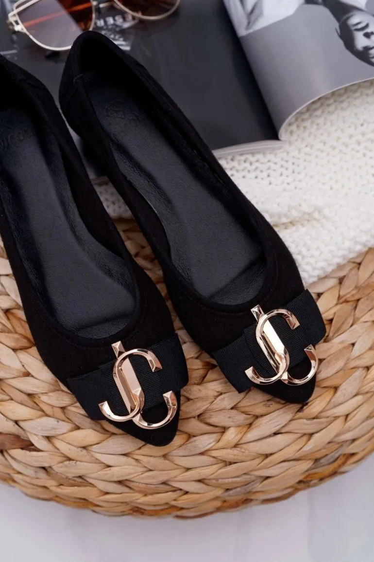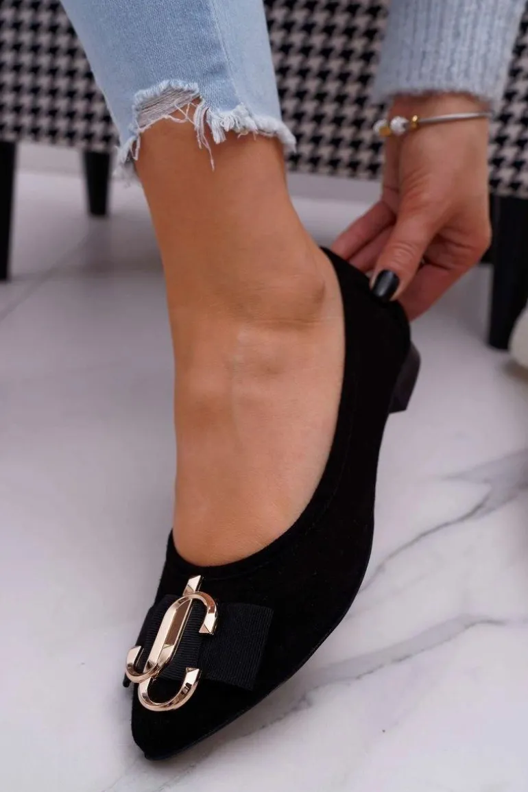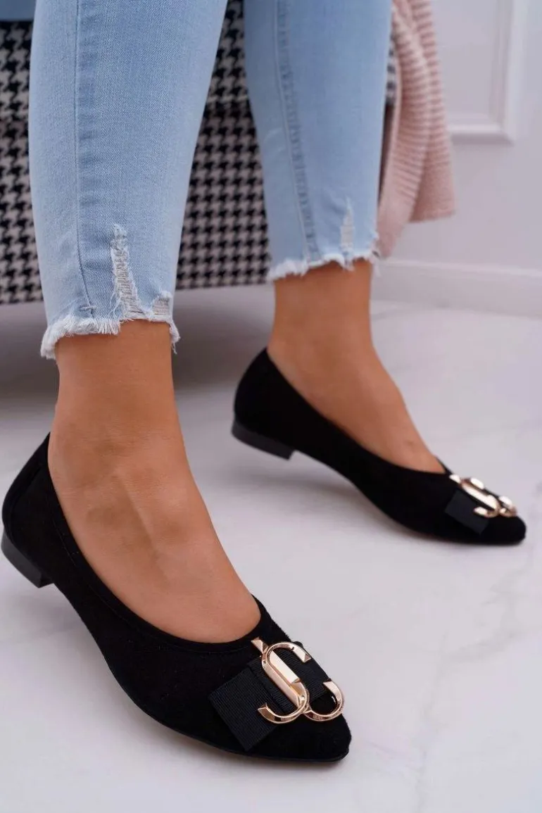 Baleriny Damskie Czarne Zamszowe Portes