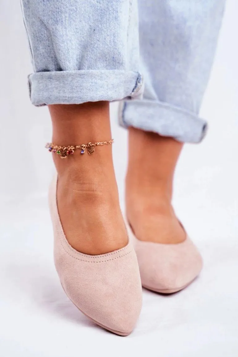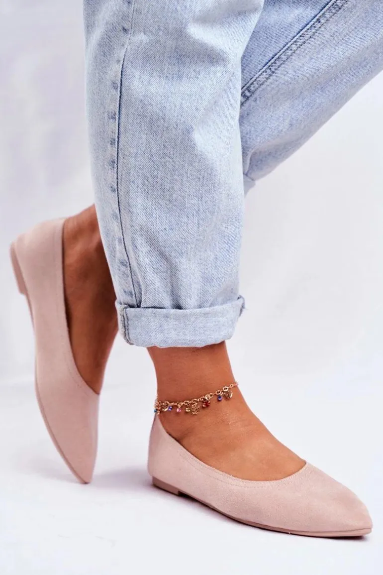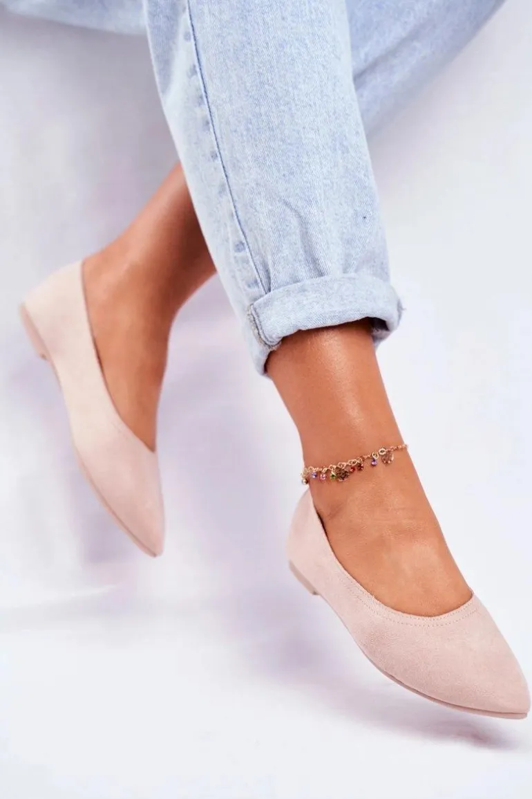 Baleriny Damskie Eko-Zamsz Beżowe Bellissima