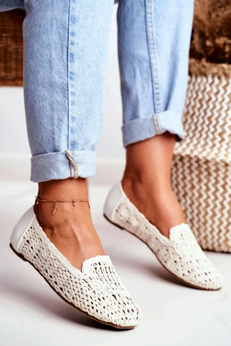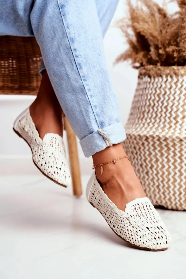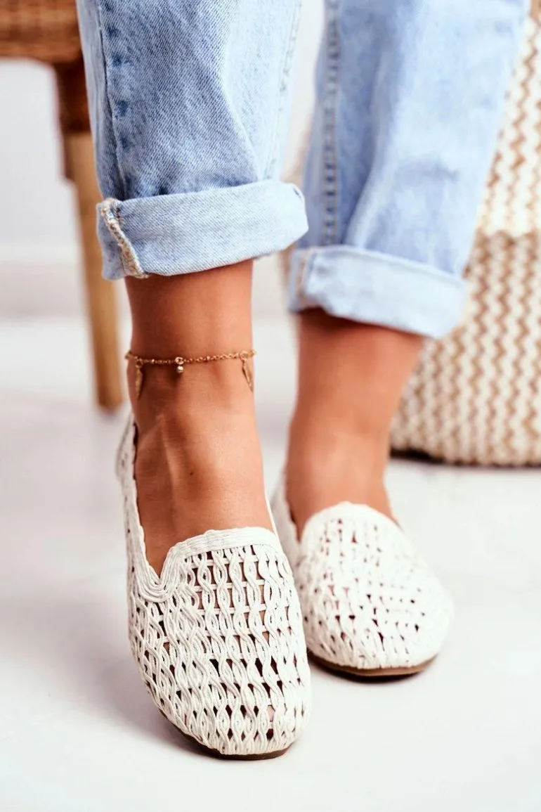 Baleriny Damskie Lu Boo Plecione Białe 4Ever