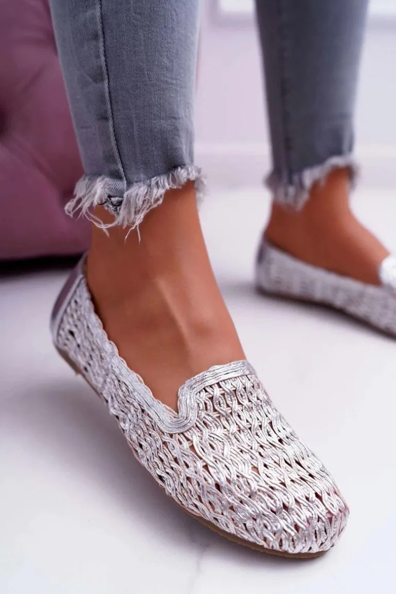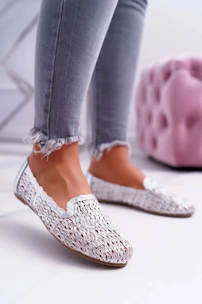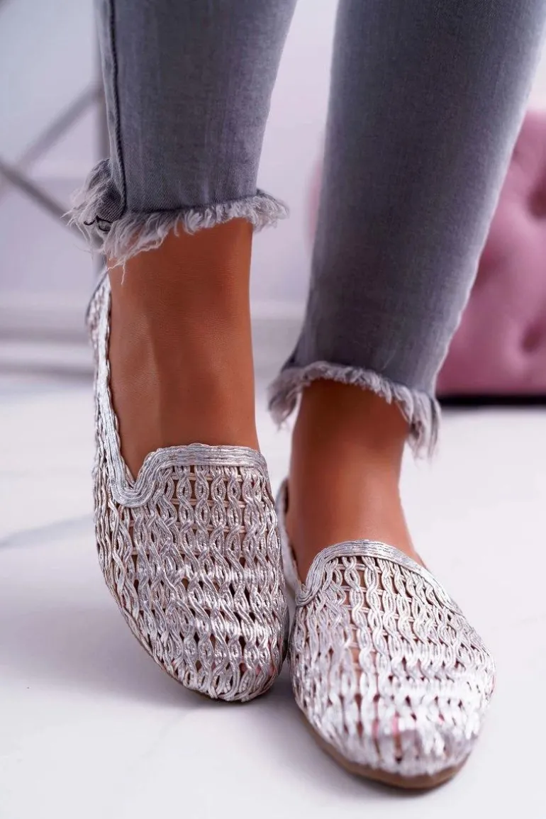 Baleriny Damskie Lu Boo Plecione Srebrny 4Ever