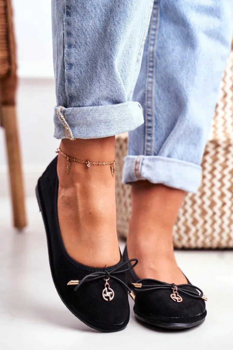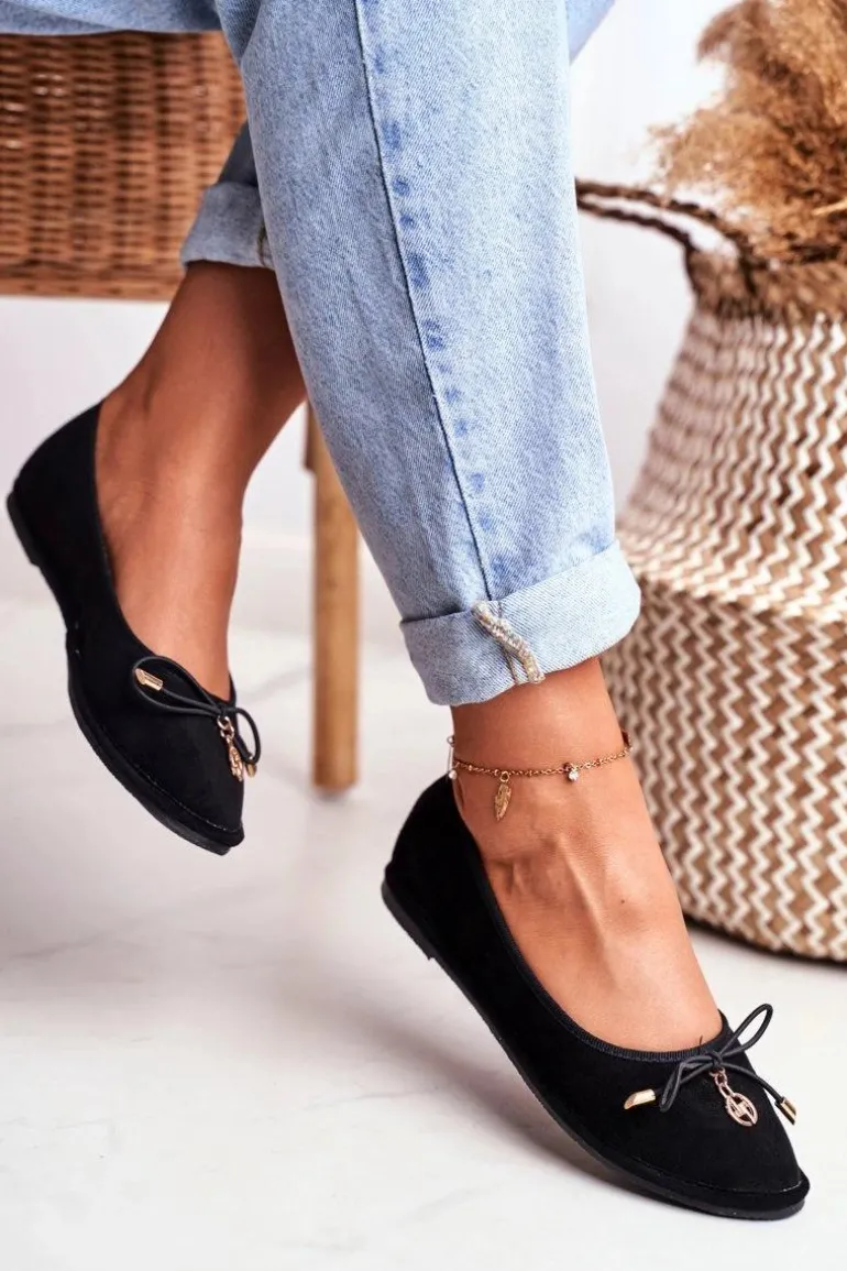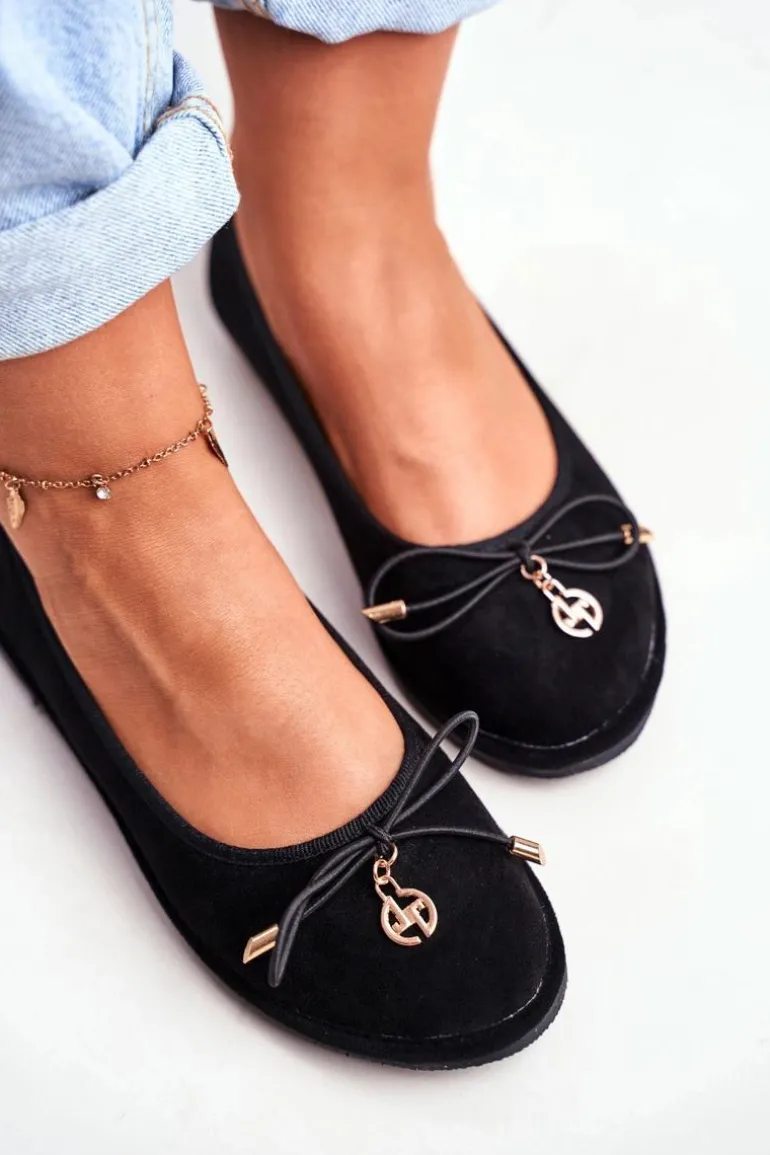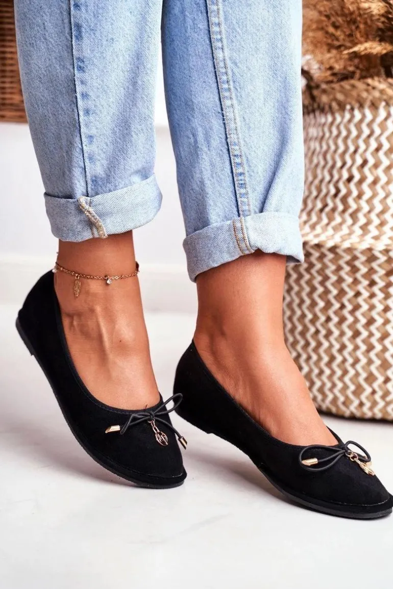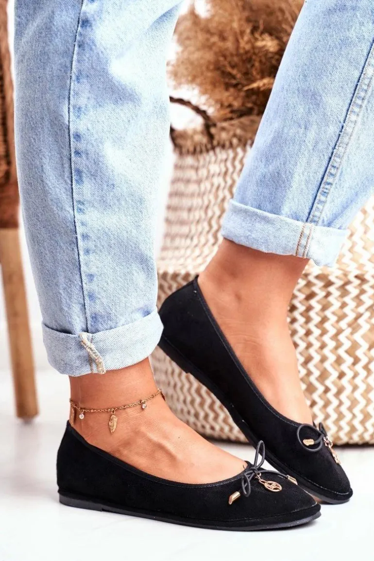Baleriny Damskie Lu Boo Zamszowe Czarne Layla