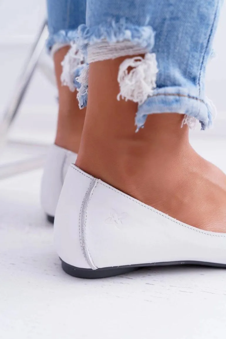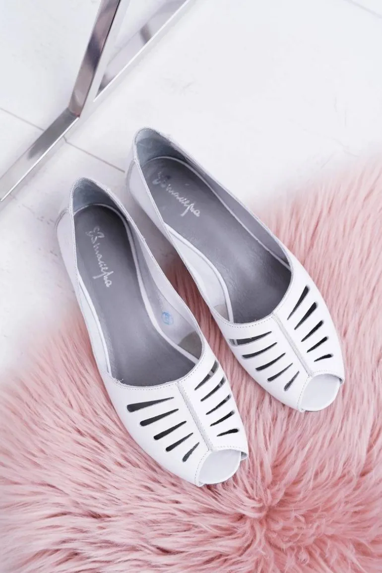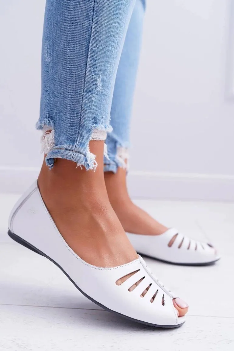 Baleriny Damskie Maciejka Skórzane Odkryte Palce 03497-59