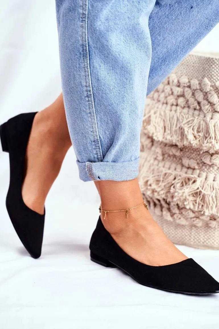 Baleriny Damskie W Szpic Zamszowe Czarne Westley