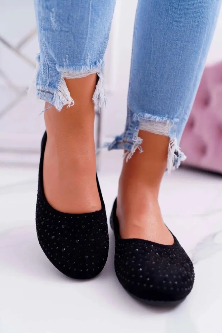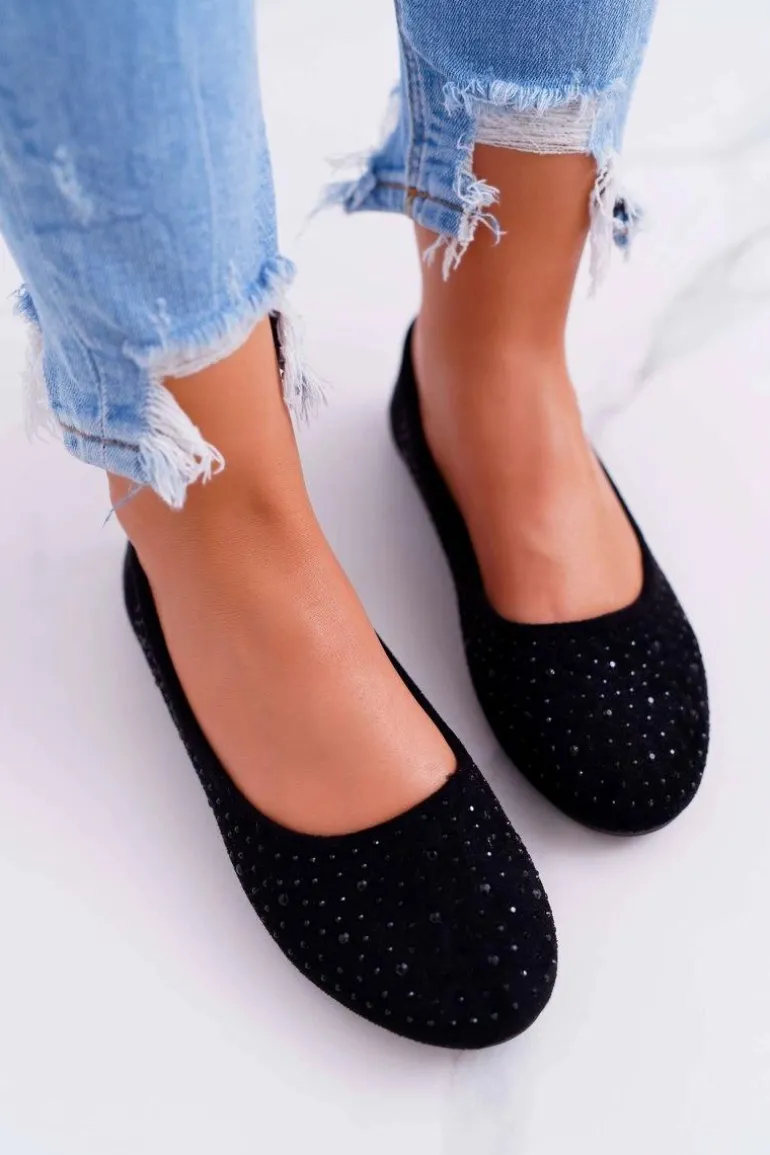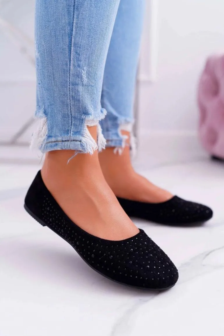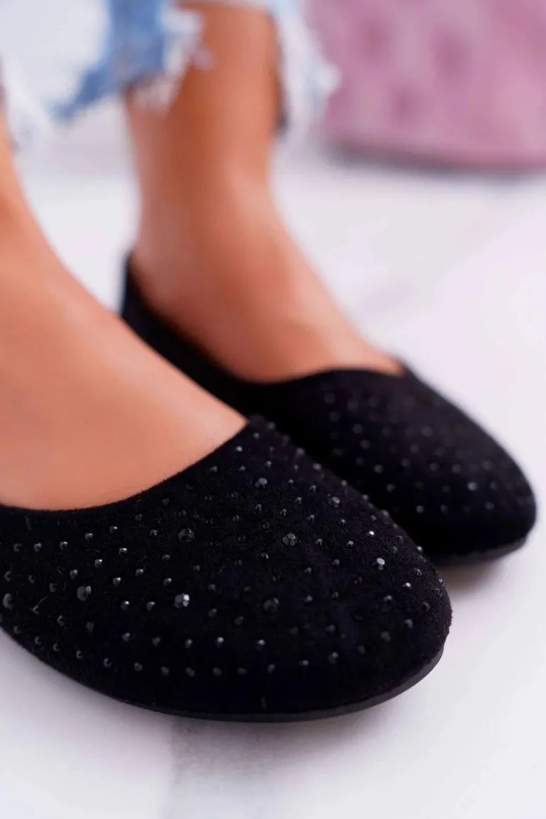 Baleriny Damskie Z Cyrkoniami Zamszowe Czarne Lora