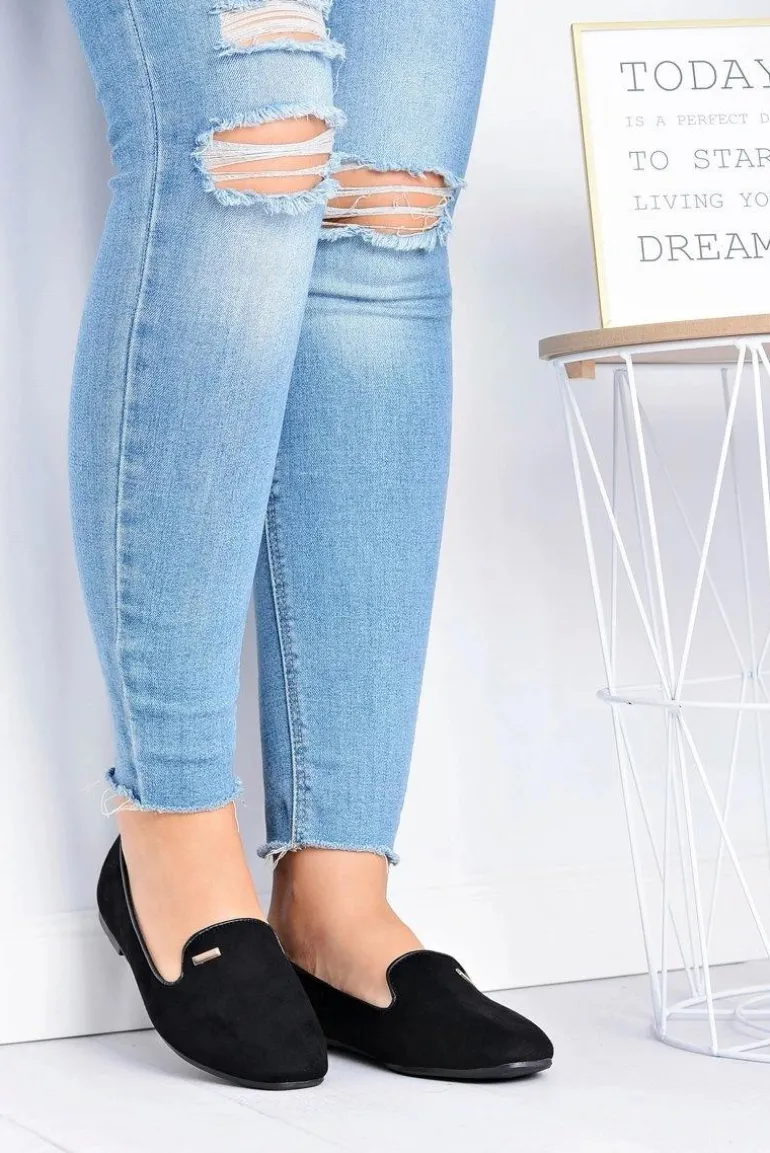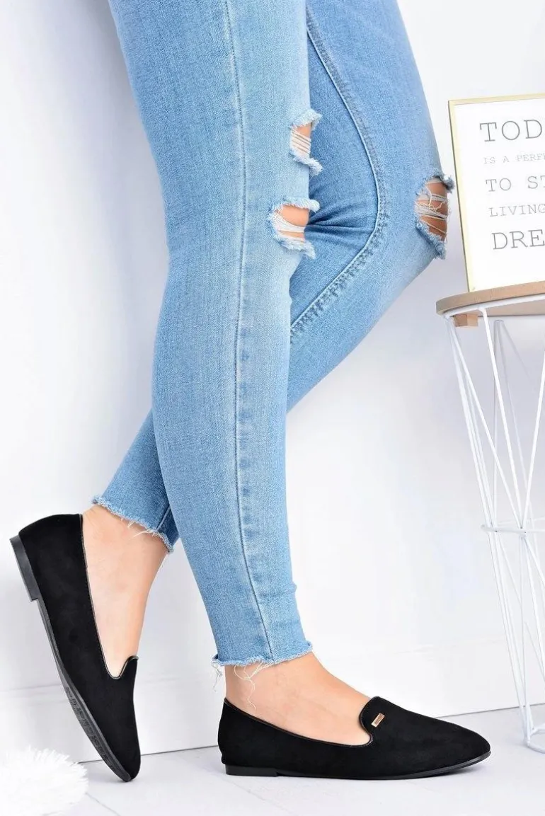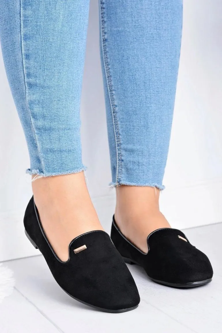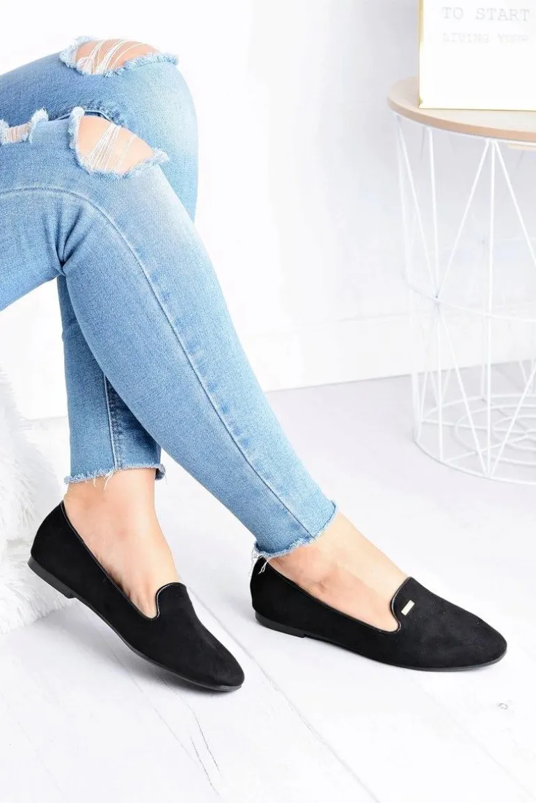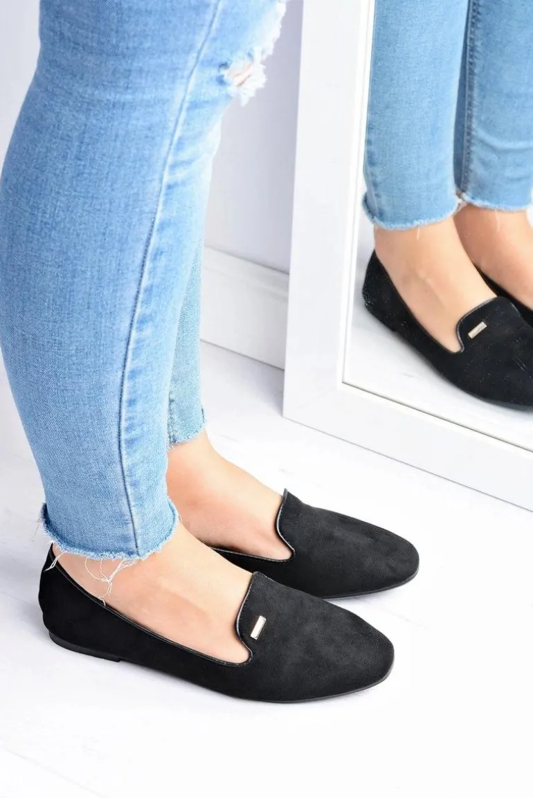 Baleriny Damskie Zamszowe Czarne Neala