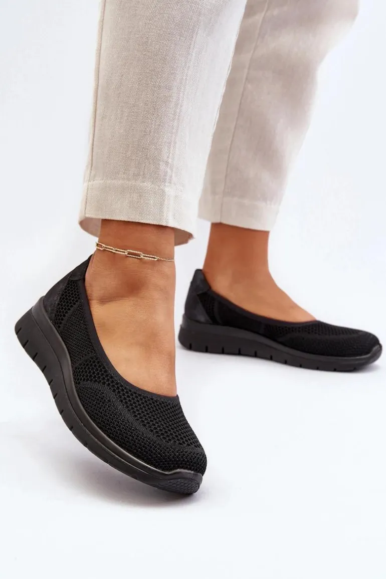 Baleriny damskie wykonane z materiału tekstylnego. Osadzone na platformie wraz z koturnem, co dodaje im subtelnego uroku i stylu. Miękka wkładka ze skóry naturalnej zapewnia niezrównany komfort nawet podczas długich dni. Te baleriny zapewnią Ci poczucie swobody i wygody, które są niezbędne w każdej sytuacji. Przy wyborze rozmiaru prosimy sugerować się tabelą rozmiarów.