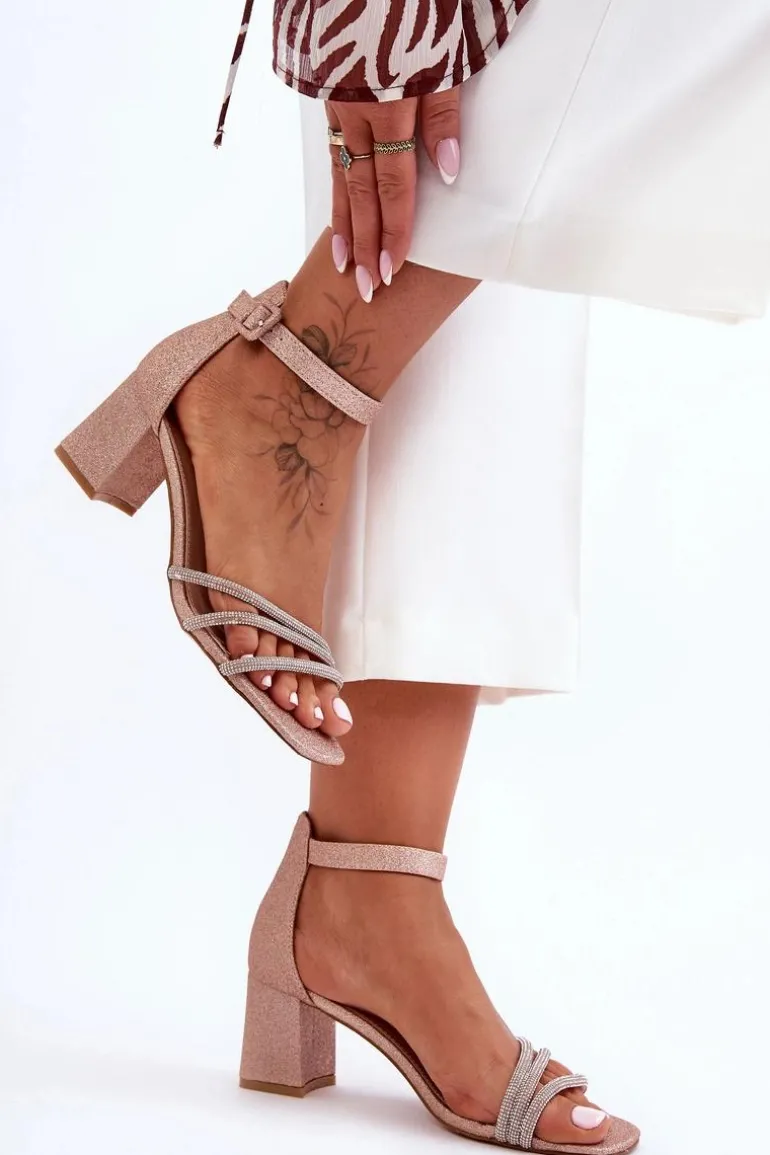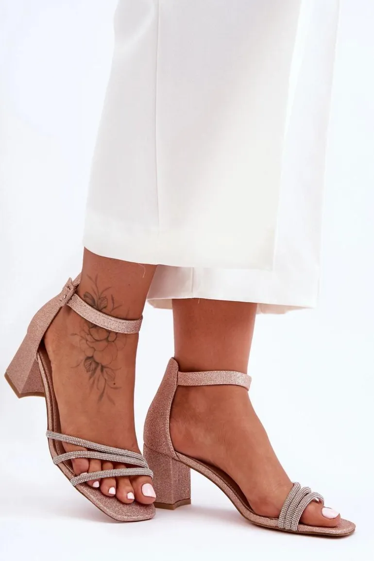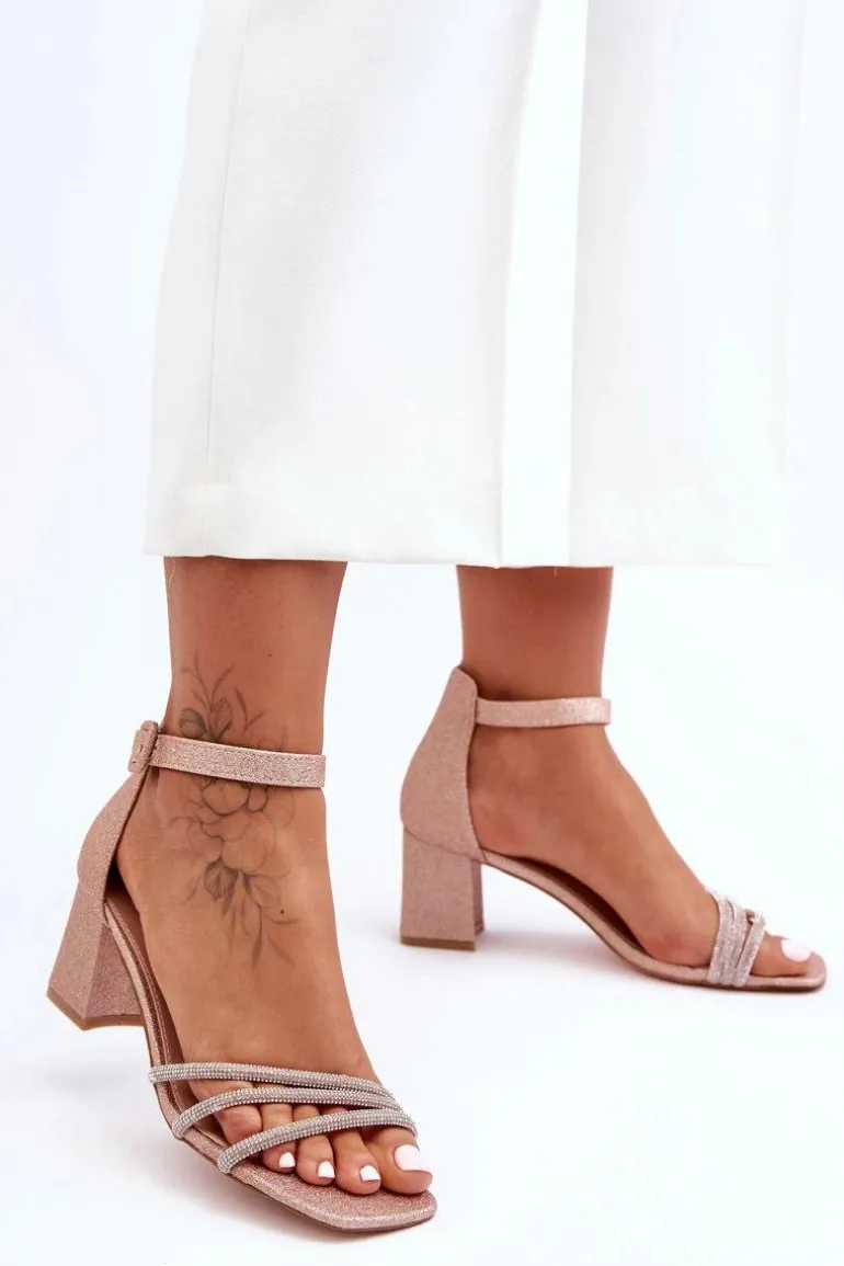 Błyszczące Sandałki Na Obcasie Beżowe Enenor