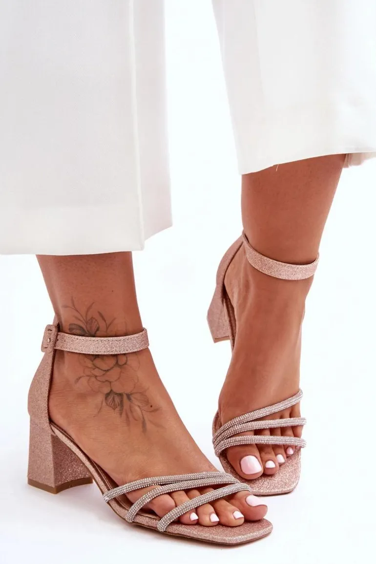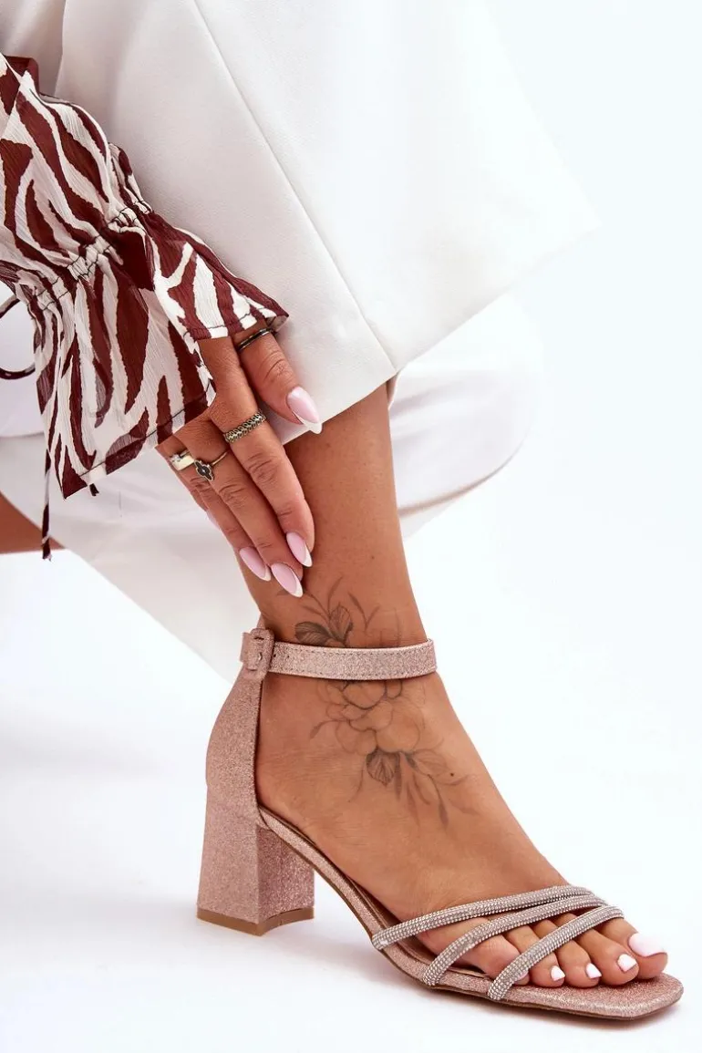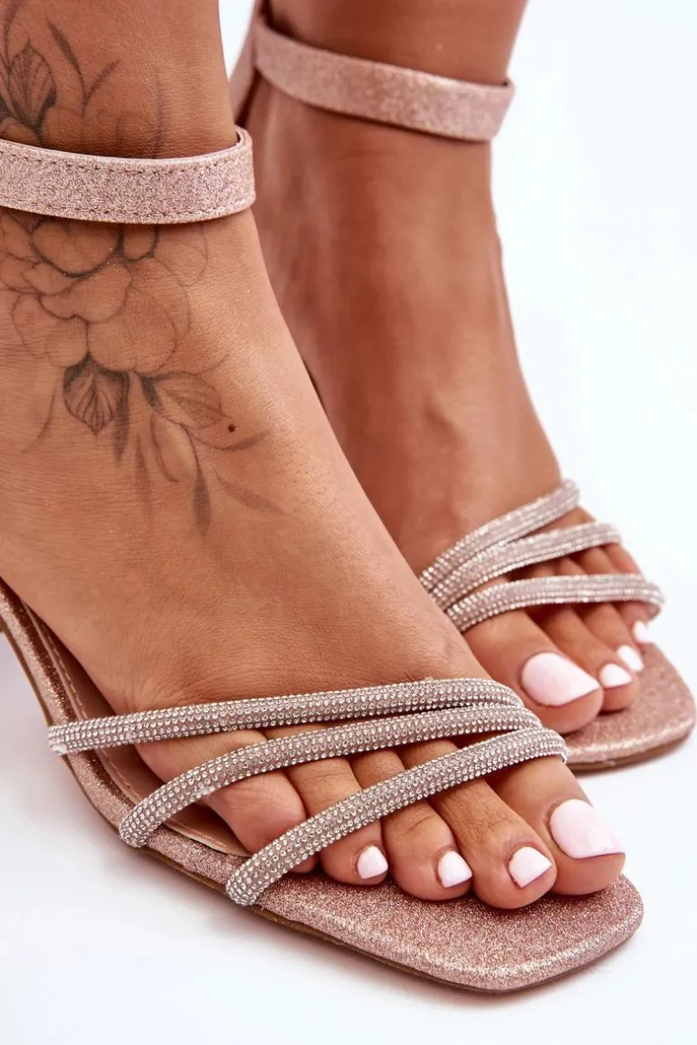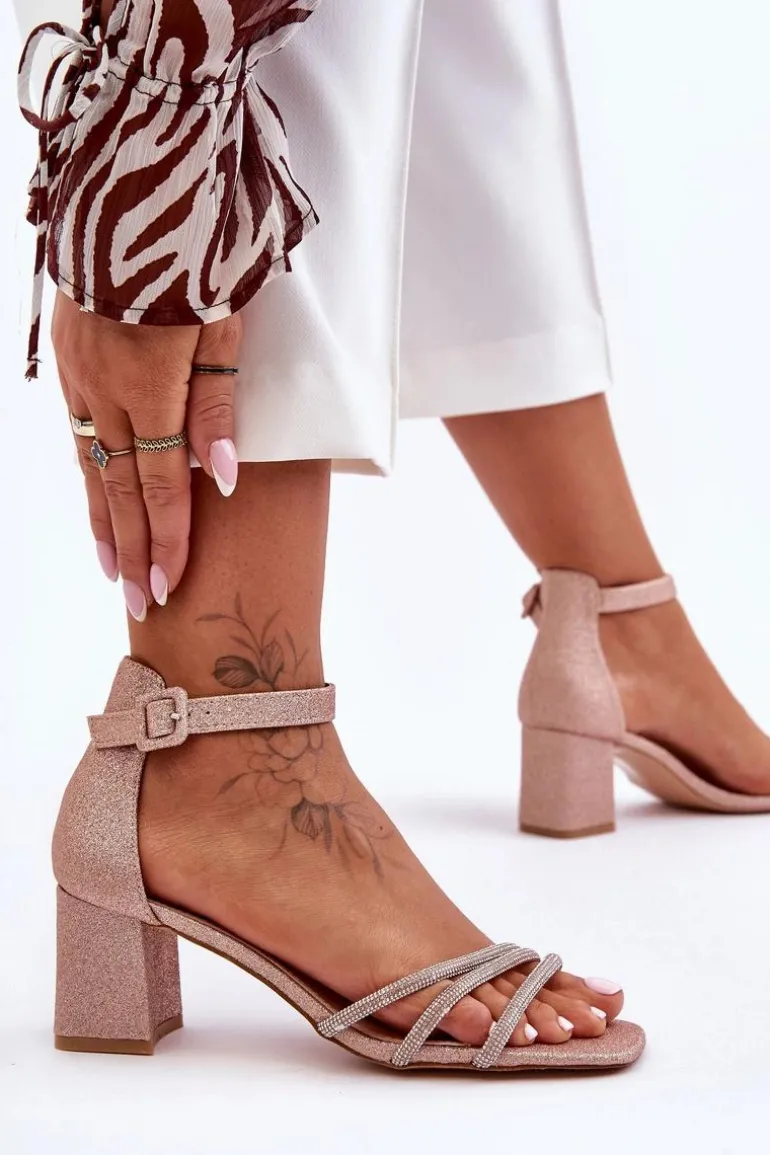 Błyszczące Sandałki Na Obcasie Beżowe Enenor
