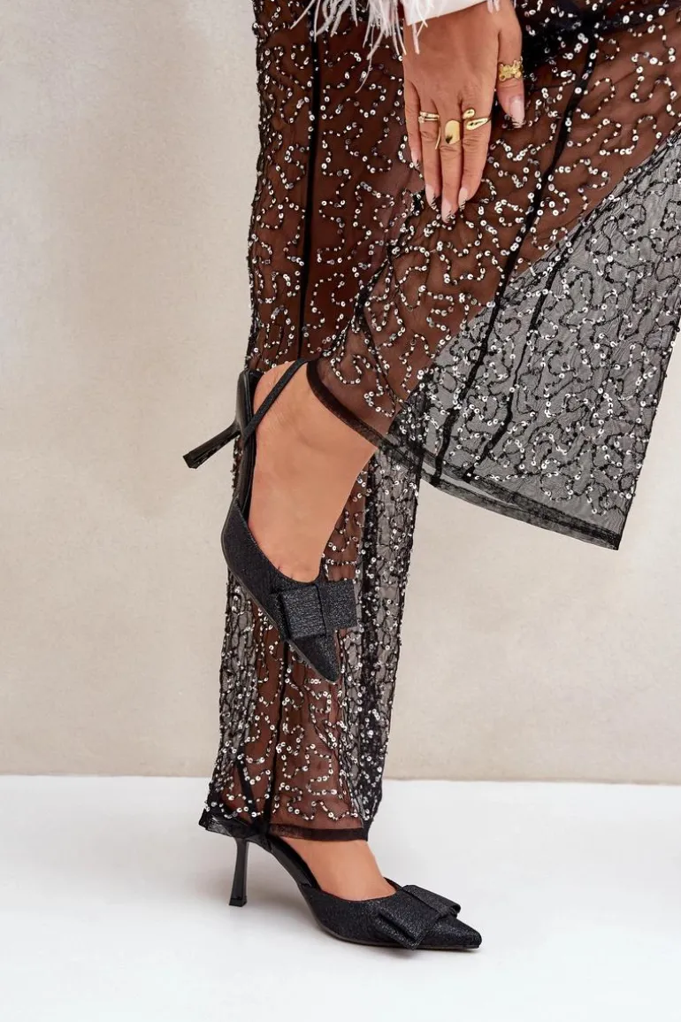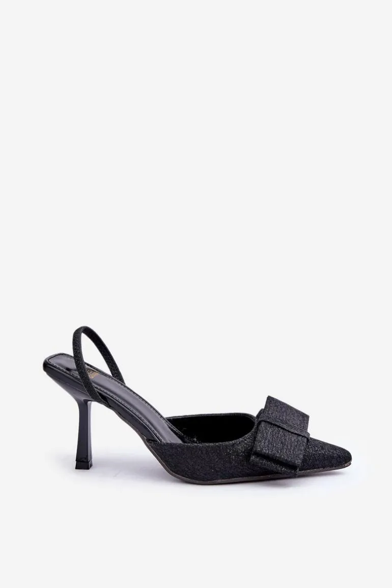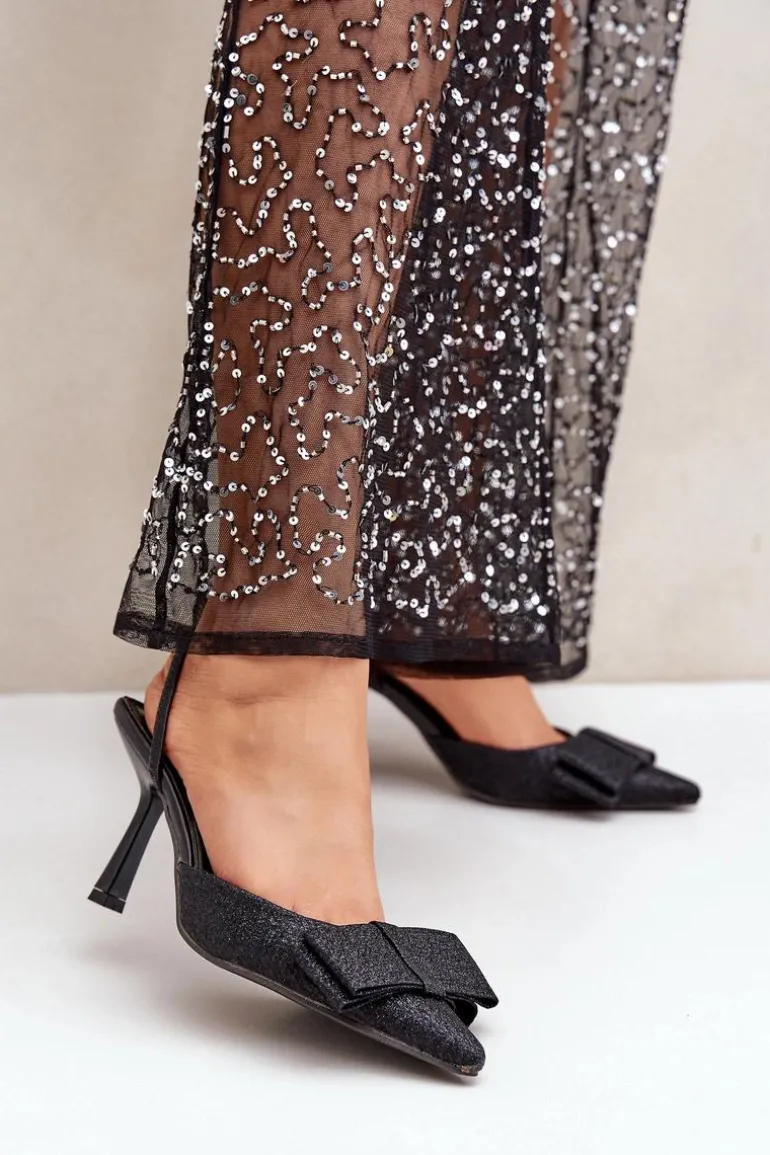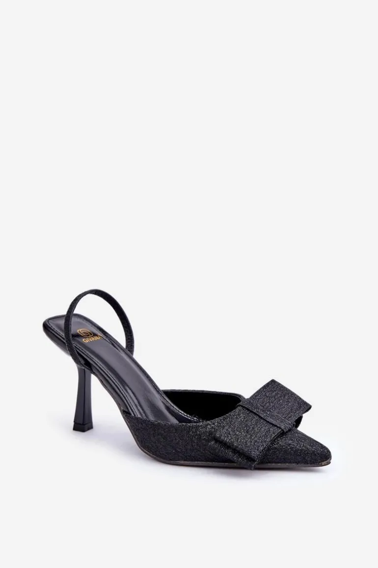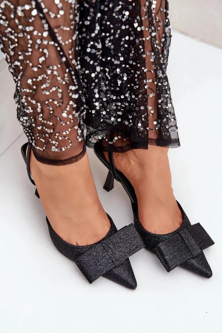 Błyszczące Szpilki Z Kokardą Czarne Gredan