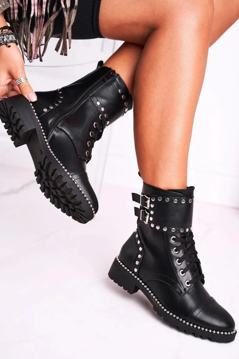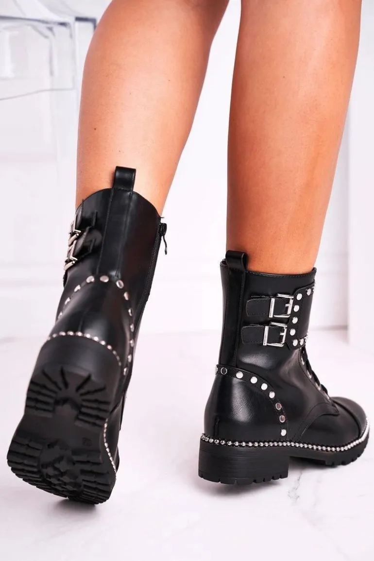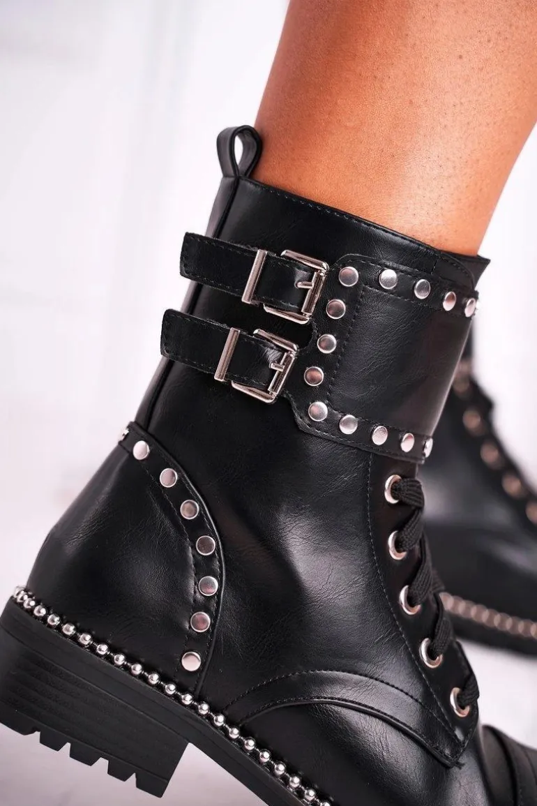 Botki Damskie Ciepłe Srebrne Nity Czarne Freed