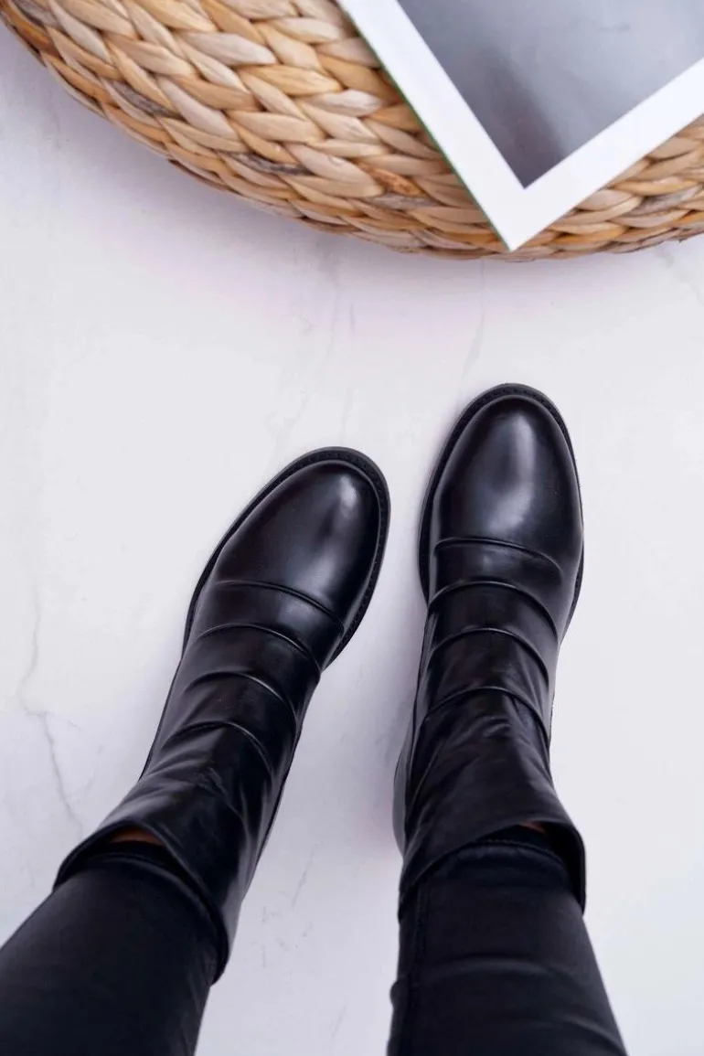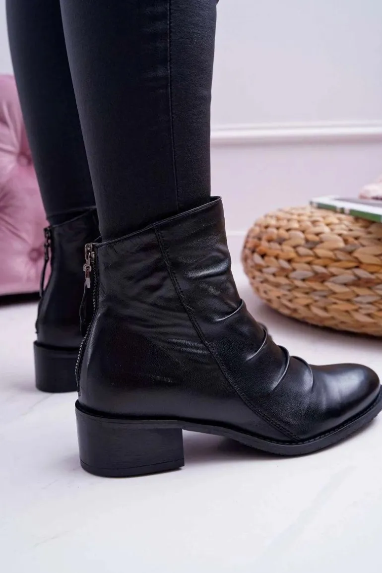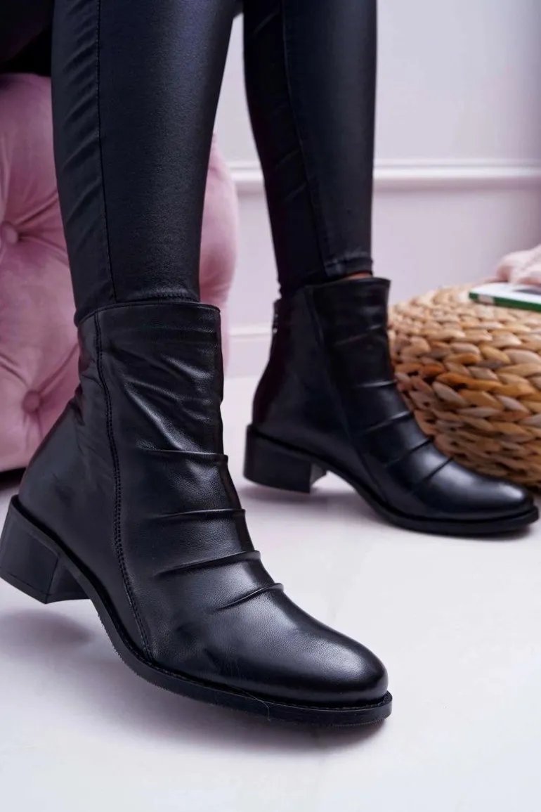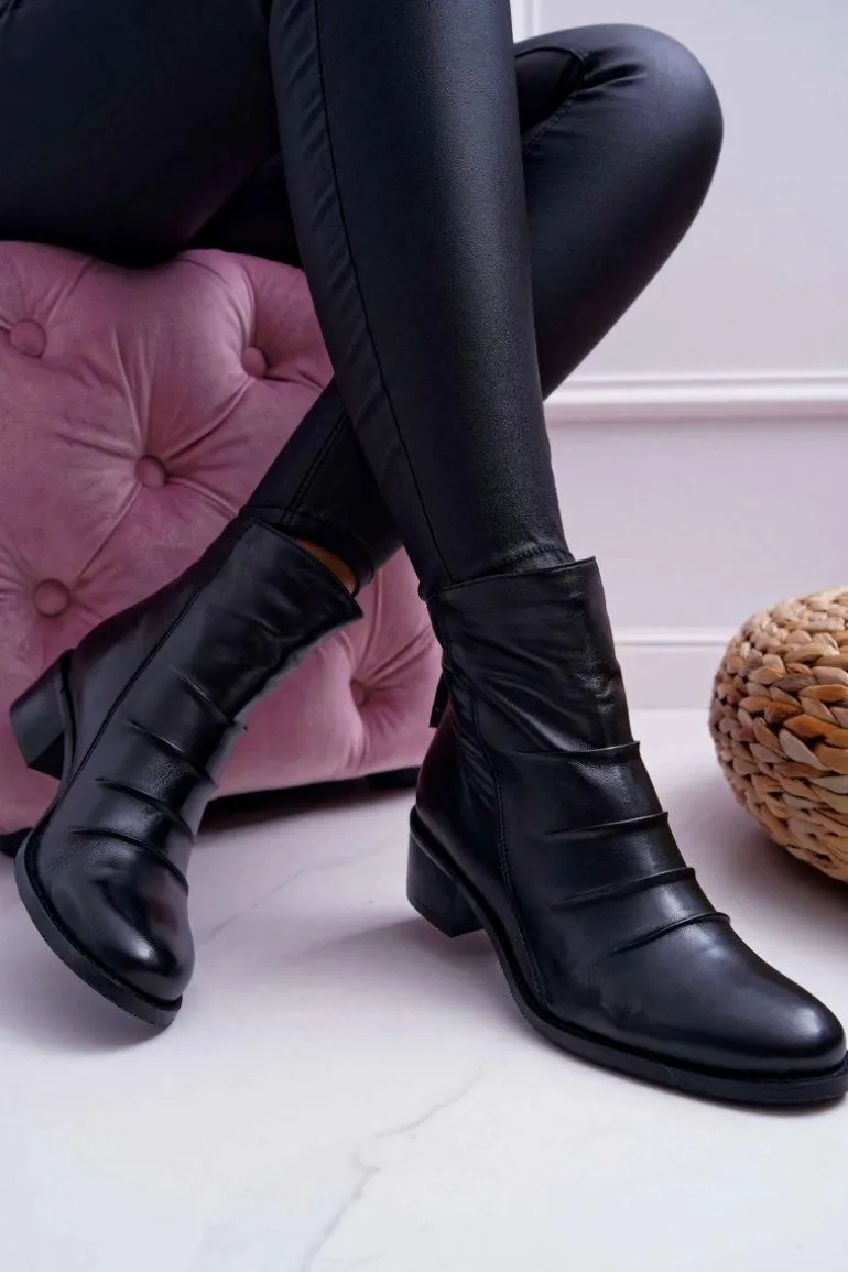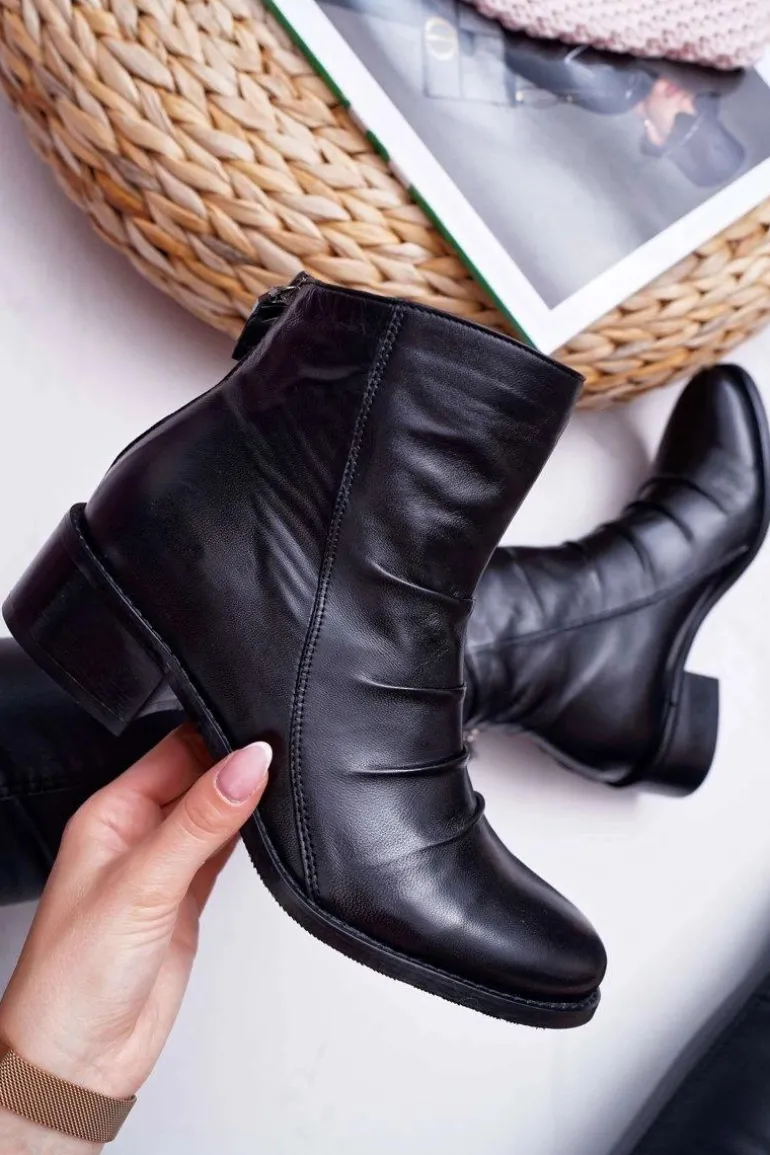 Botki Damskie Czarne Płaski Obcas Skóra Naturalna Laura Messi