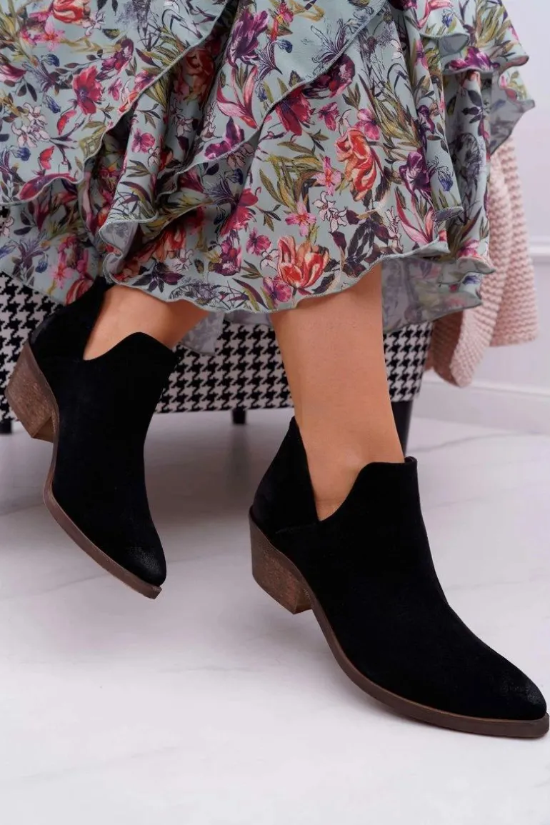Botki Damskie Czarne Wiosenne Skórzane Anabella