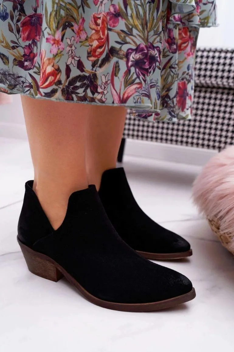 Botki to nie tylko buty na chłodne dni. Świetnie sprawdzą się również podczas tworzenia wiosennych stylizacjach. Botki posiadają delikatne wycięcia na wysokości kostek oraz płaski obcas, który stał się bardzo modny w tym sezonie. Botki w całości wykonane ze skóry zamszowej. Produkt Polski, co gwarantuje nam komfort oraz wysoką jakość wykonania. Idealne do zwiewnych sukienek oraz jeansowych spodni. Przy wyborze rozmiaru prosimy sugerować się tabelą rozmiarów.