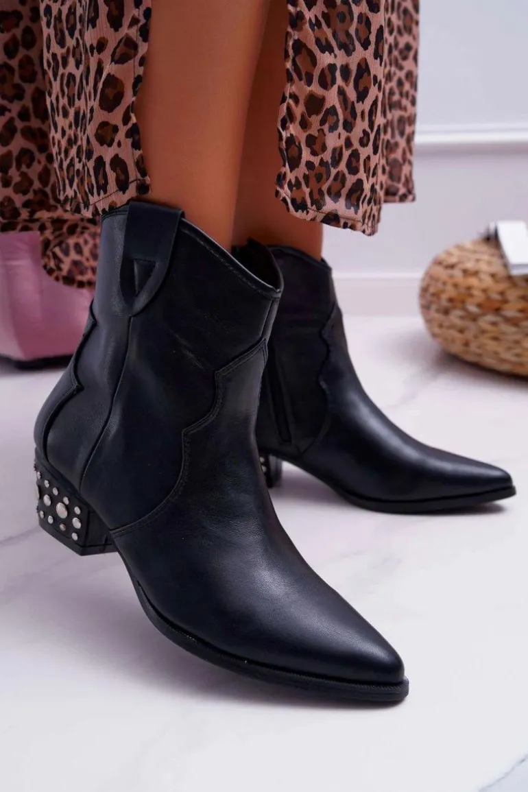 Prawdziwe klasyczne kowbojki. Nosek w szpic oraz zdobiony niski obcas. Ten model wpisuje się w kanony mody na całym świecie. Zamek ułatwiający zakładanie, przyjemnie układają się na stopie. Z tymi botkami skomponujesz wiele ciekawych stylizacji! Przy wyborze rozmiaru prosimy sugerować się tabelą rozmiarów.