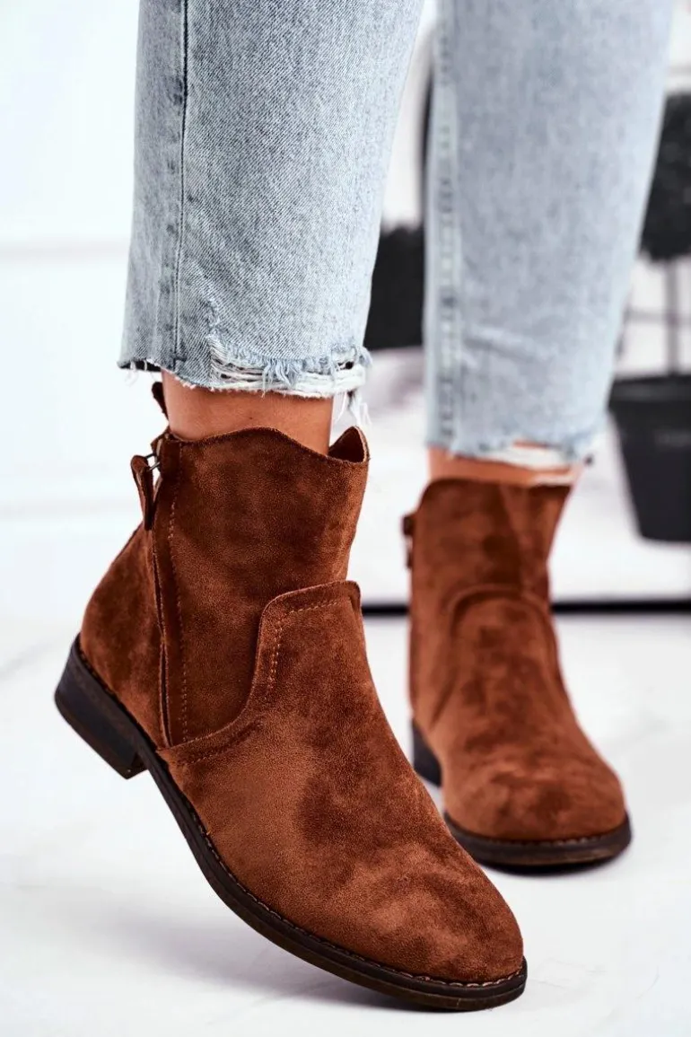 Botki Damskie Kowbojki Płaski Obcas Camel Plemmi