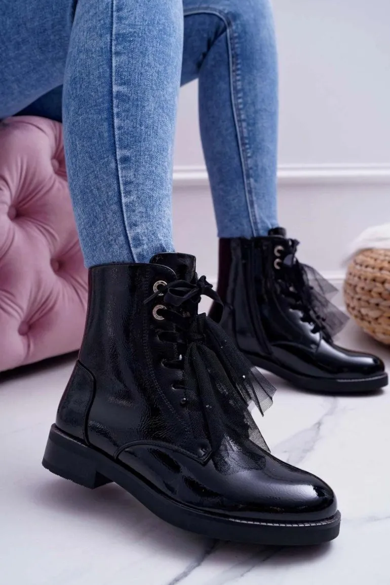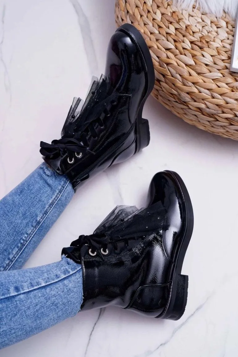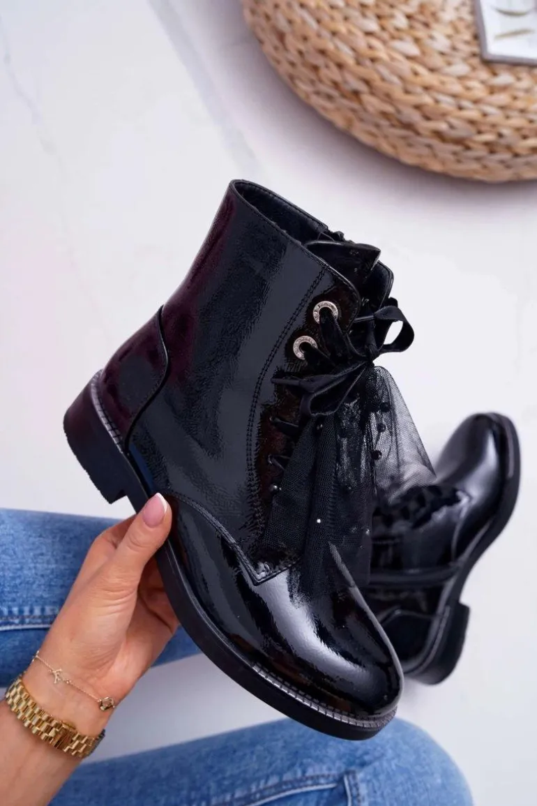 Botki Damskie Lakierowane Płaskie Czarne Barski 39-2