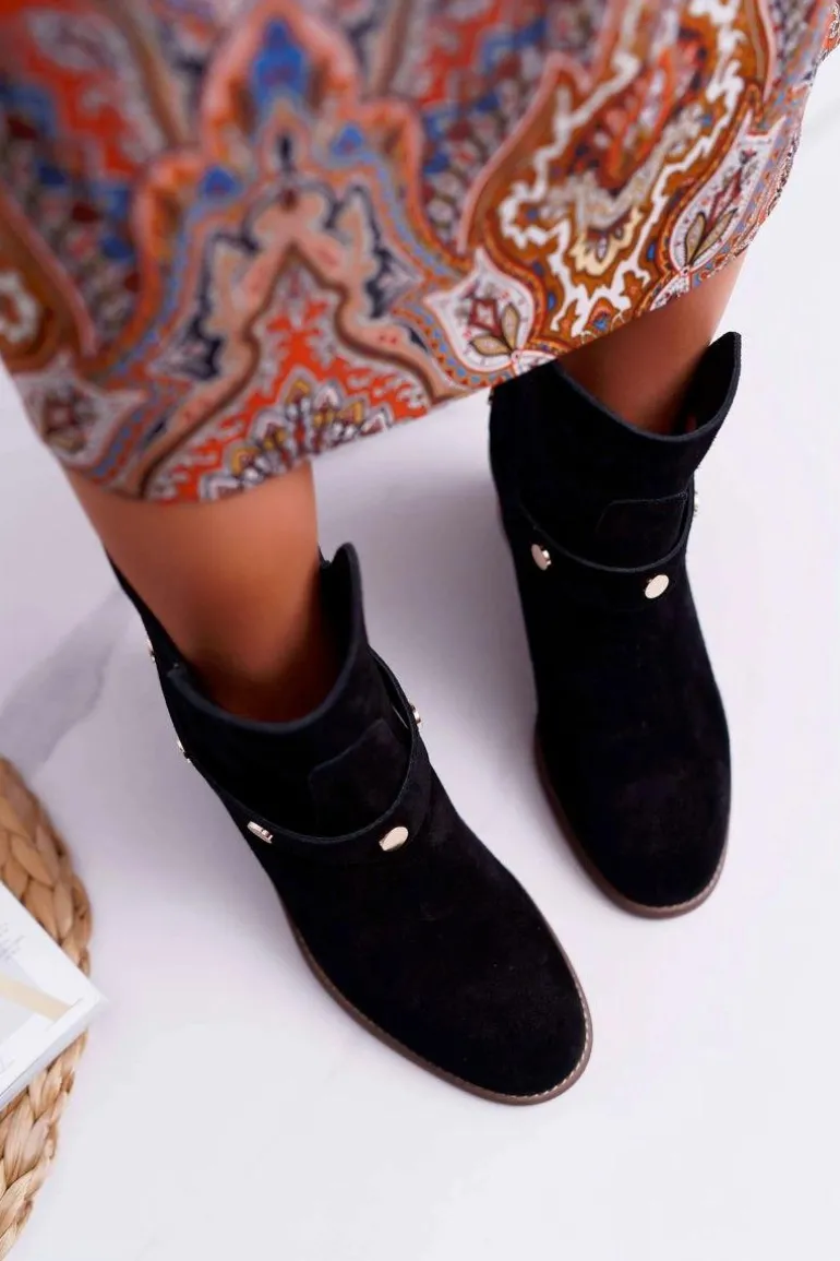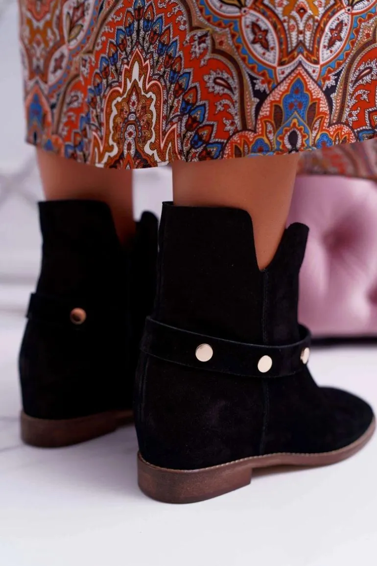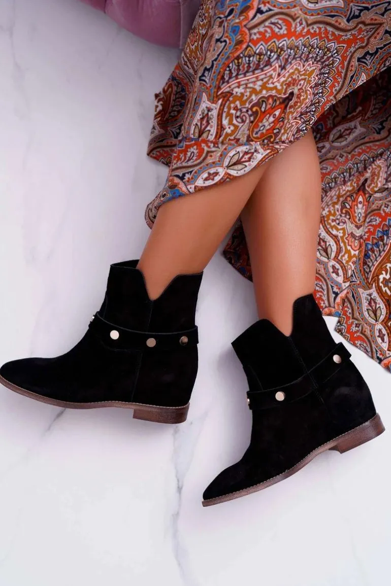 Botki Damskie Laura Messi 1890 Skóra Zamsz Czarne Darmah