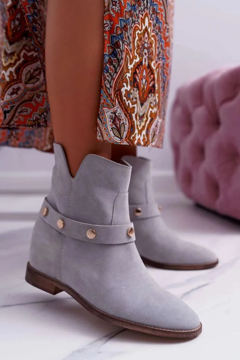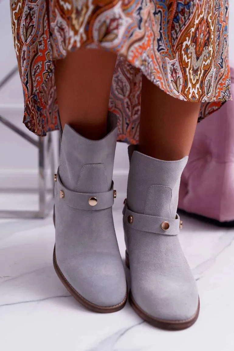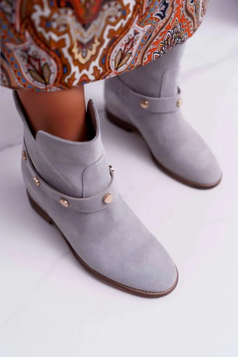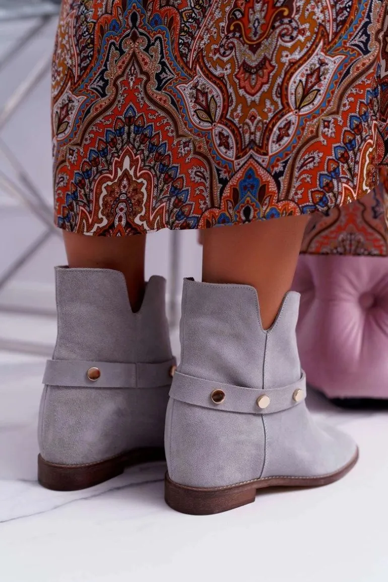 Botki Damskie Laura Messi 1890 Skóra Zamsz Szare Darmah