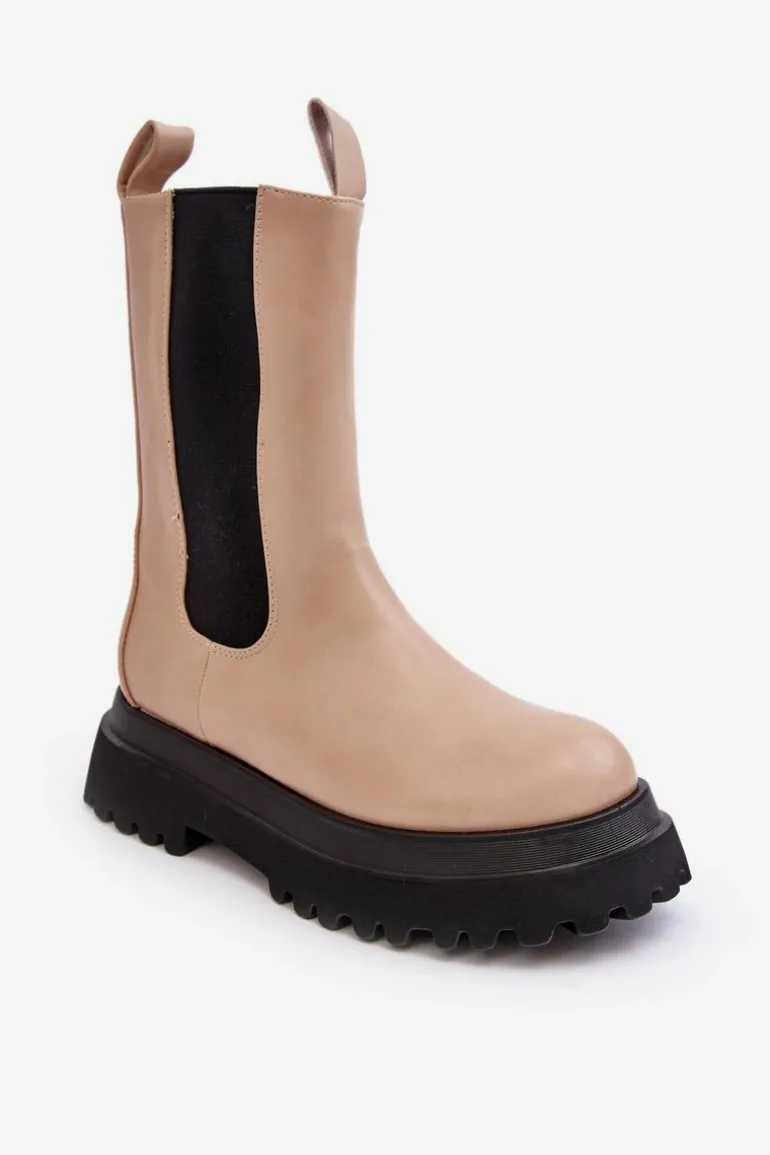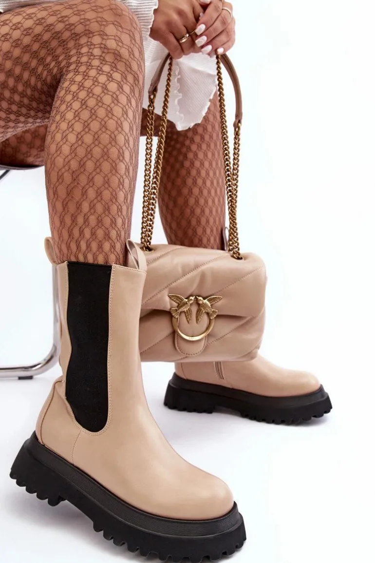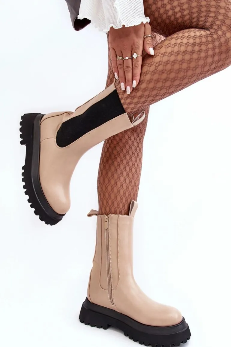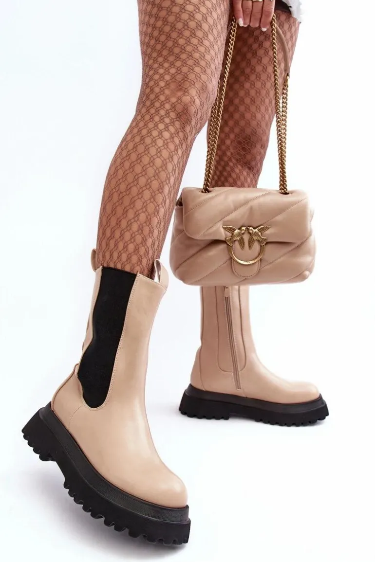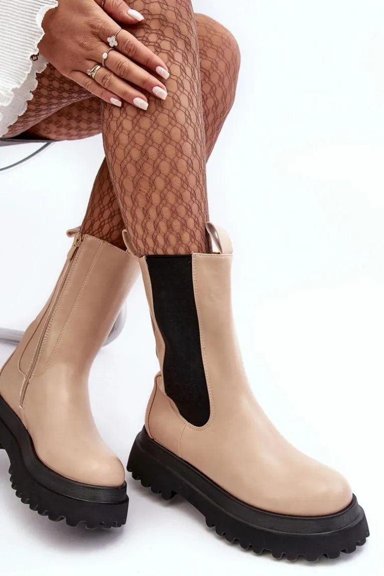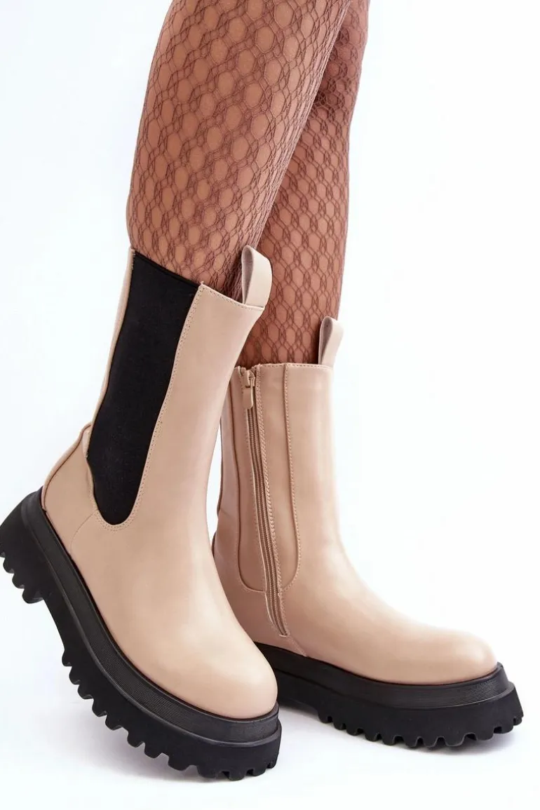 Czy może nas coś jeszcze zaskoczyć? Oczywiście! Spójrz na te przepiękne botki! Botki wykonane ze skóry ekologicznej, wewnątrz ocieplone kocem obuwniczym, więc o ciepło w chłodnie dni nie musisz się martwić. Masywna platforma i wysoka cholewka świetnie wpiszą się w stylizacje glam rock lub grunge. Przy wyborze rozmiaru prosimy sugerować się tabelą rozmiarów.