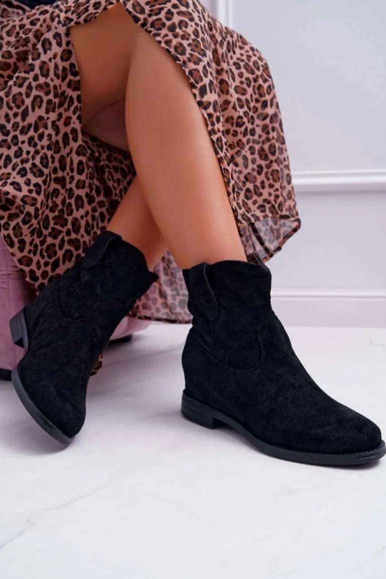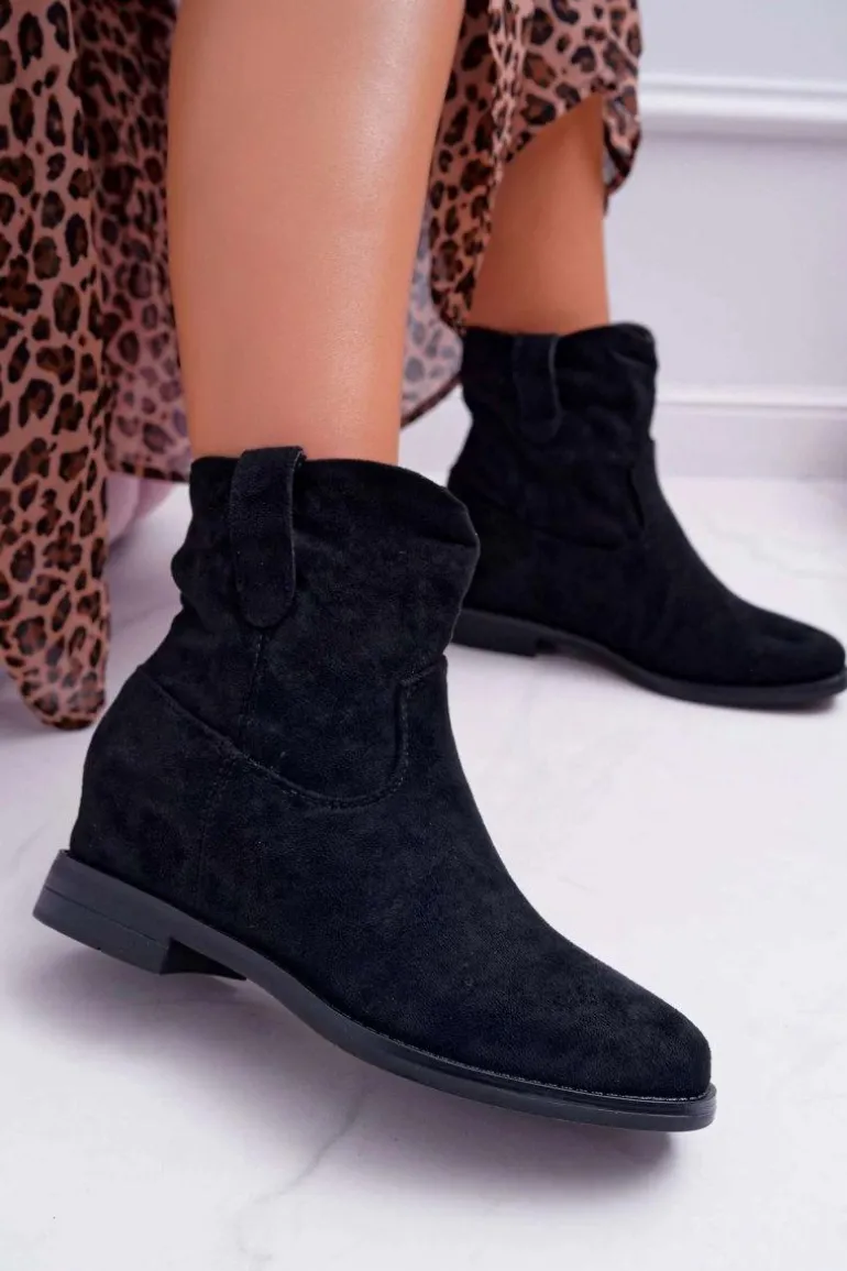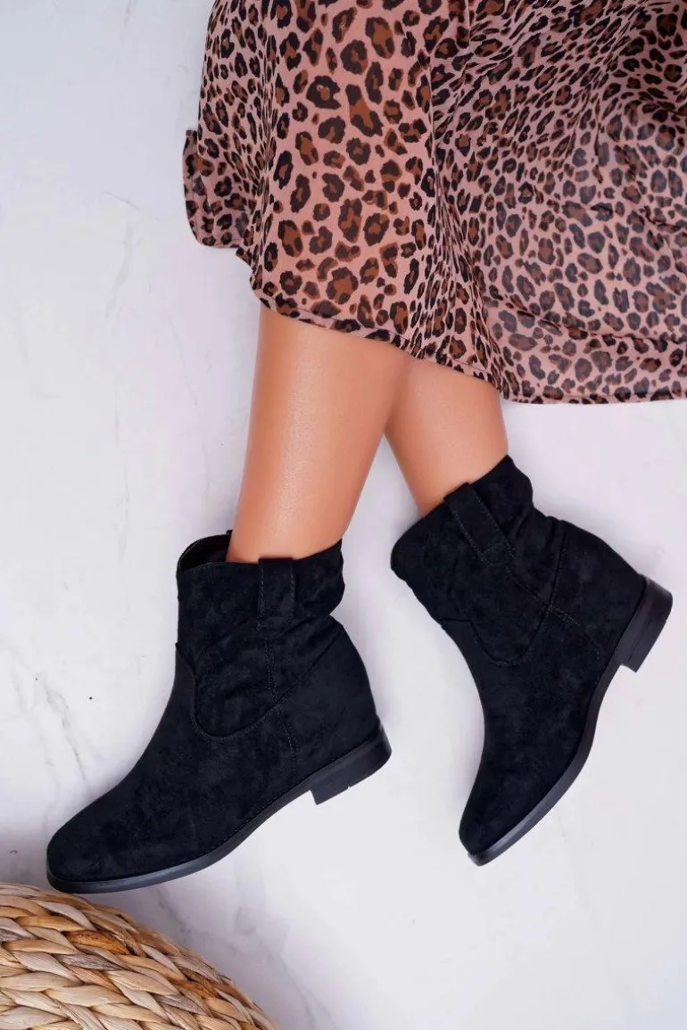 Botki Damskie Na Koturnie Płaski Obcas Ocieplane Za Kostkę Czarne Demini