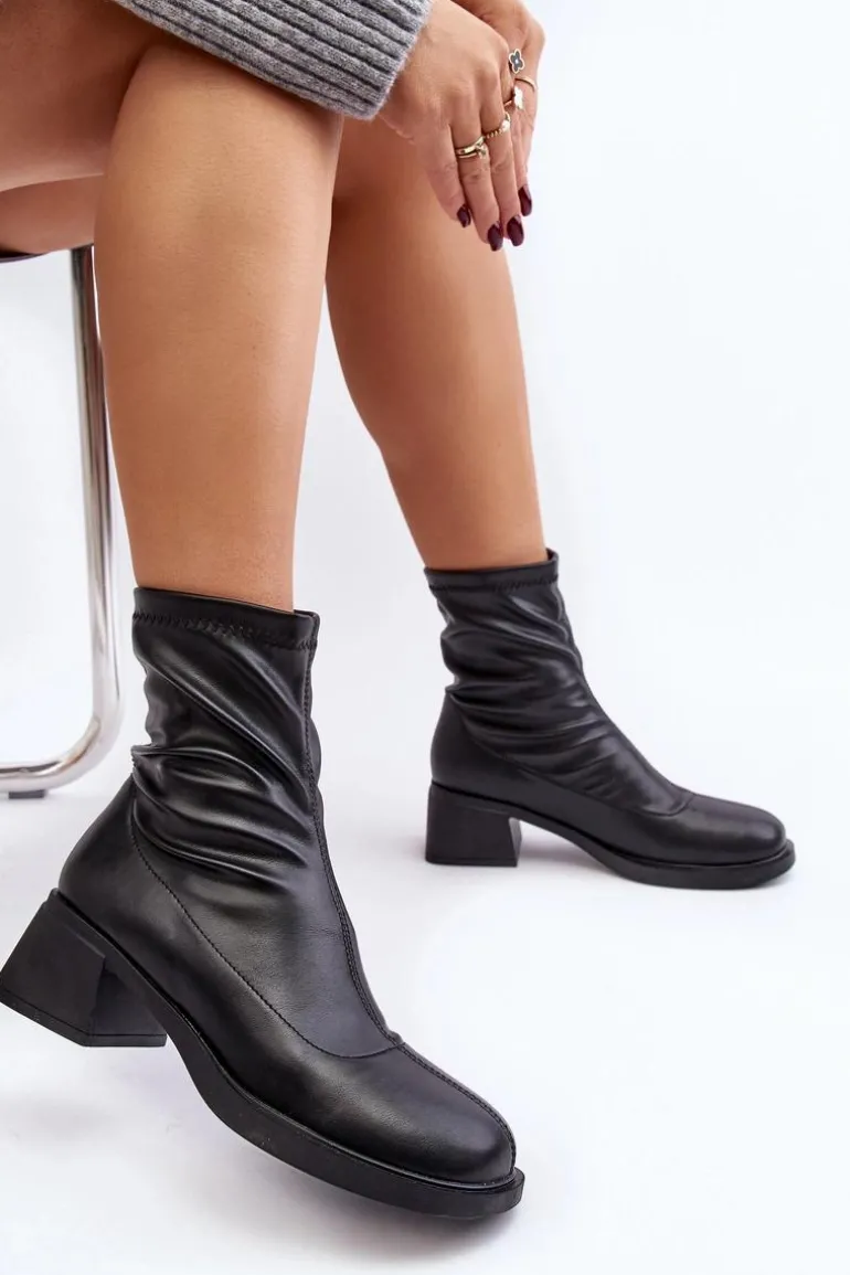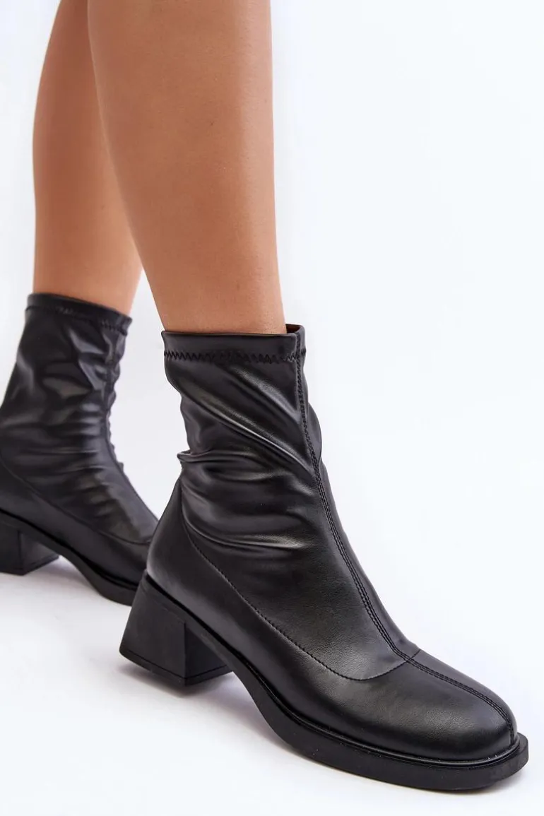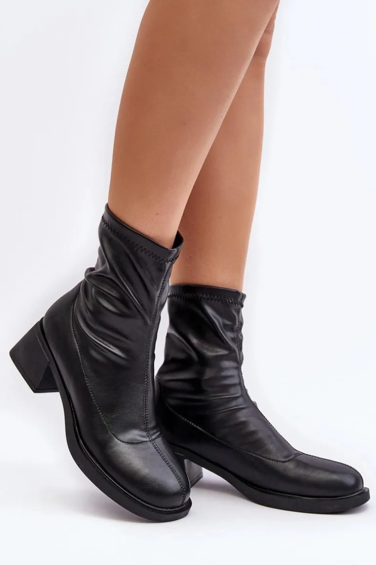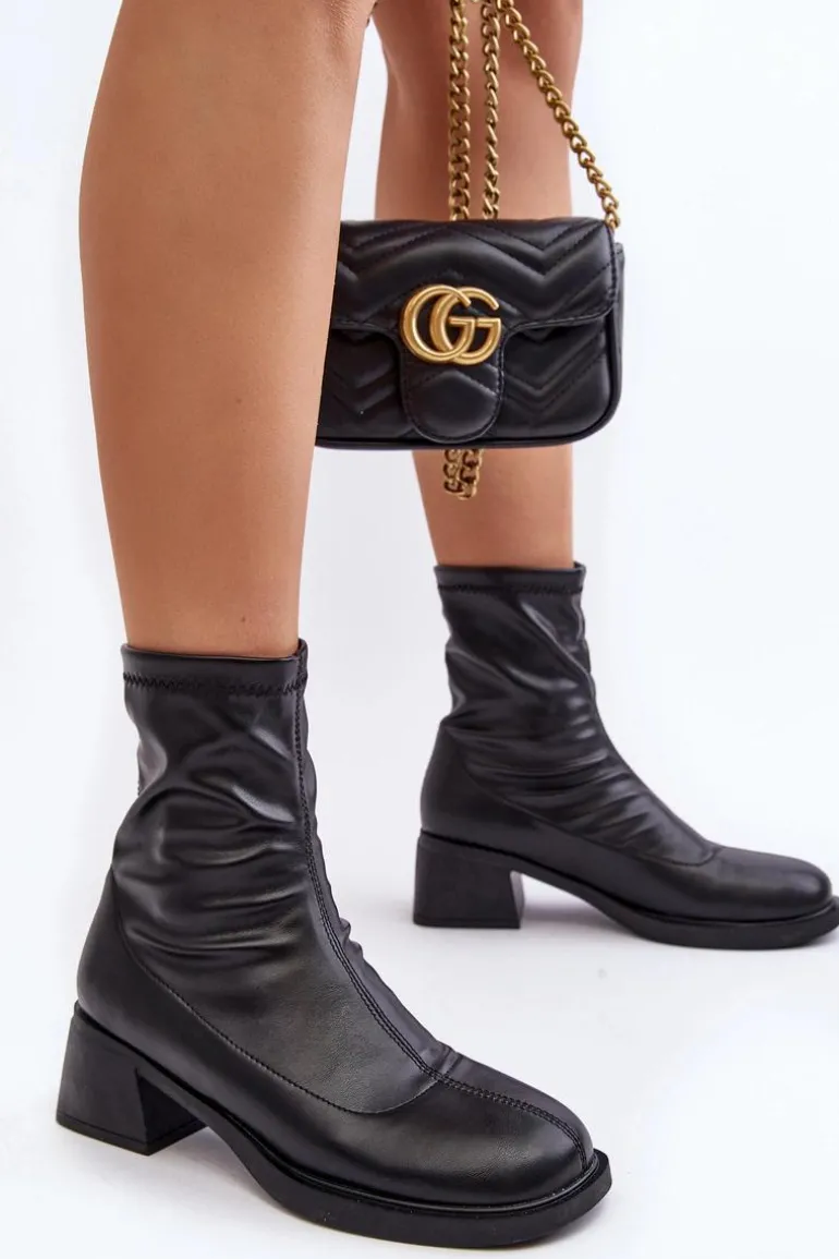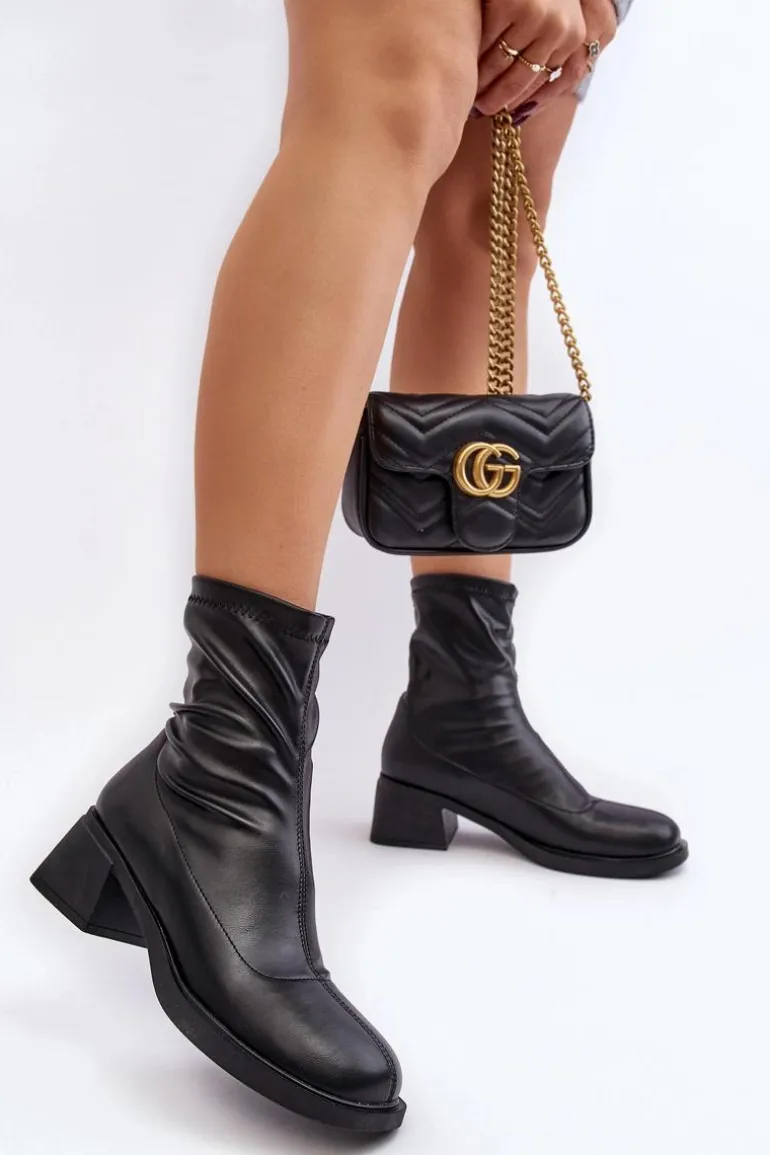Botki Damskie Na Niskim Obcasie Czarne Aphroteia