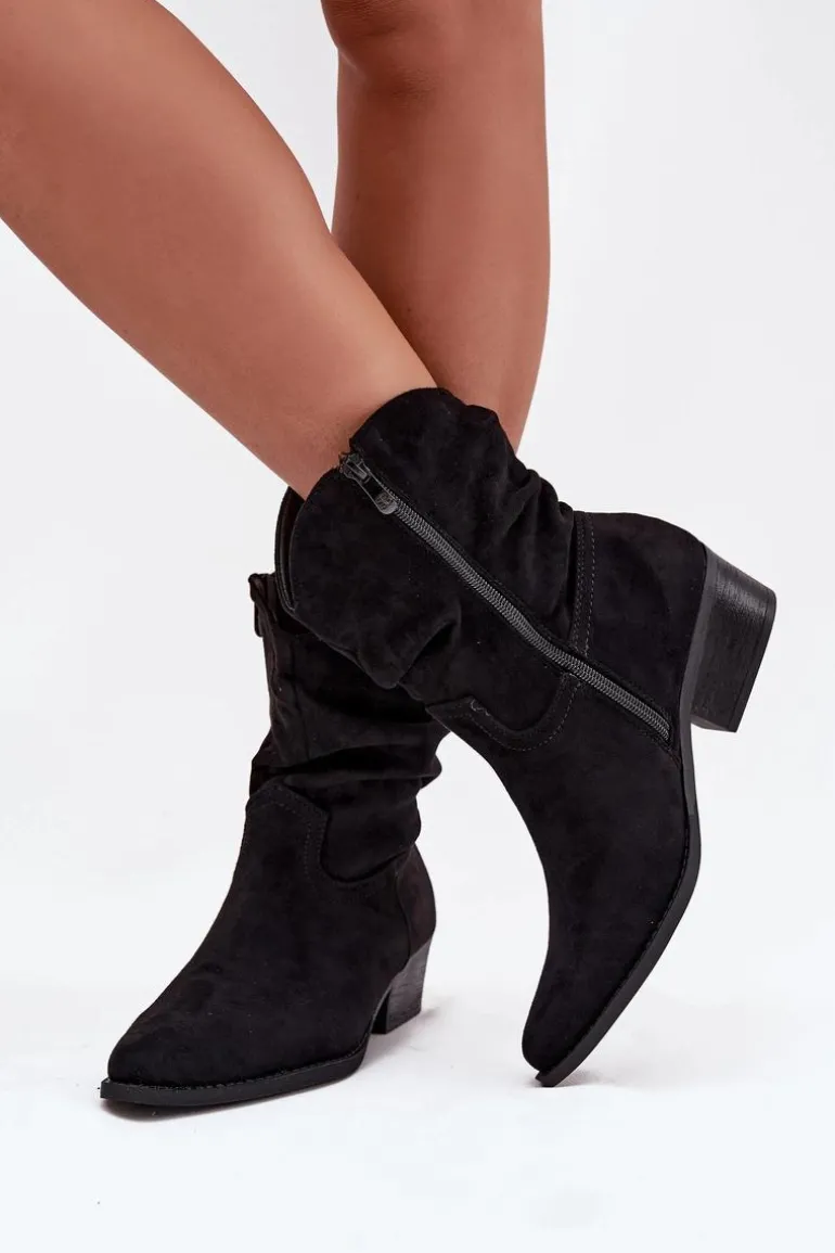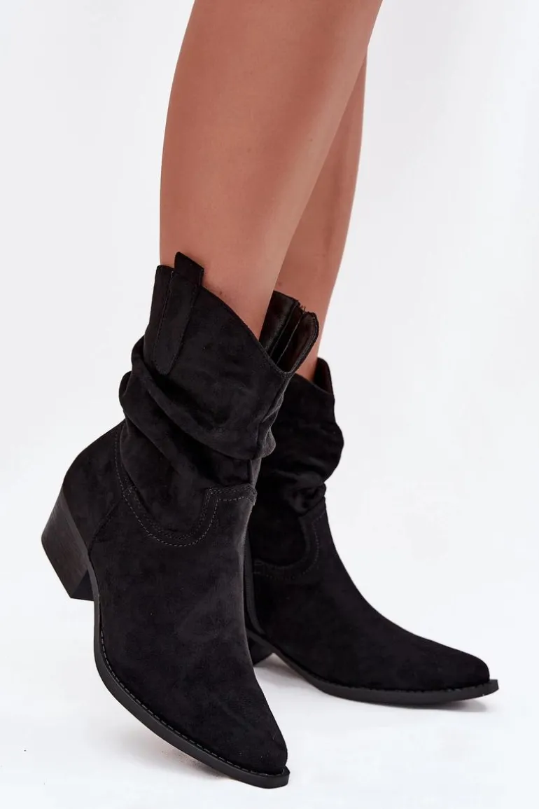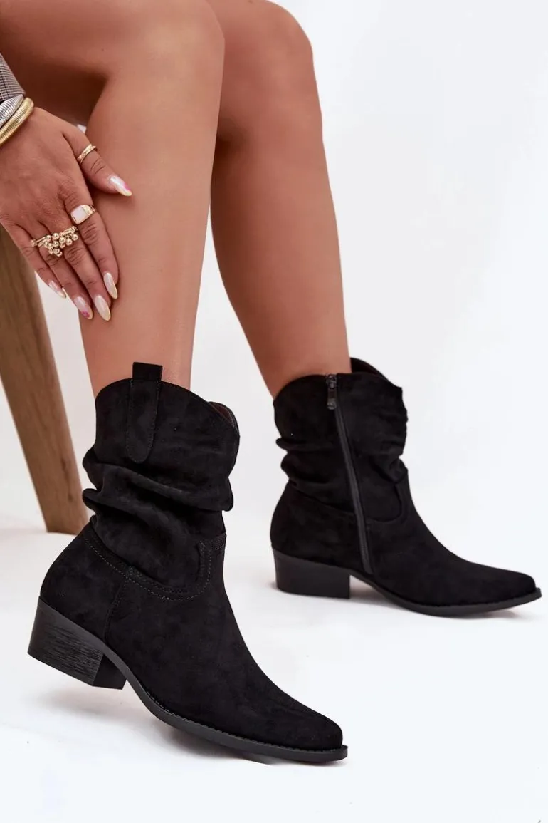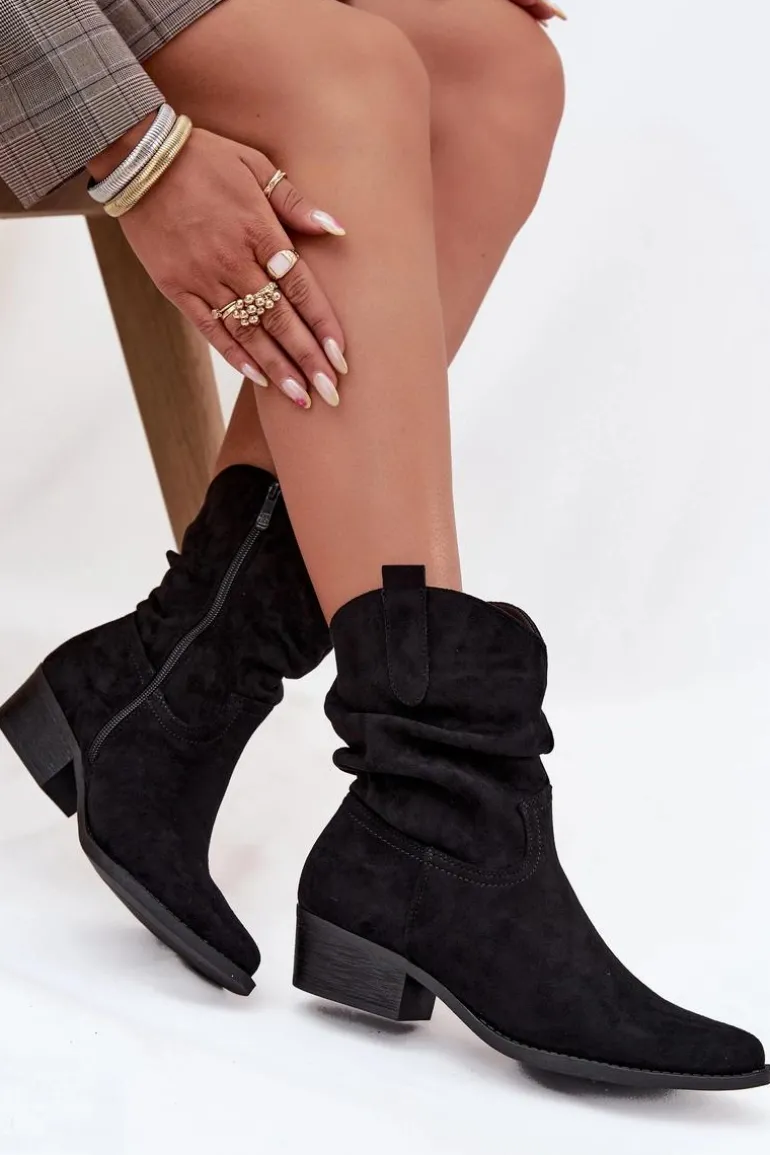 Botki Damskie Na Niskim Obcasie Z Marszczeniem Czarne Adena