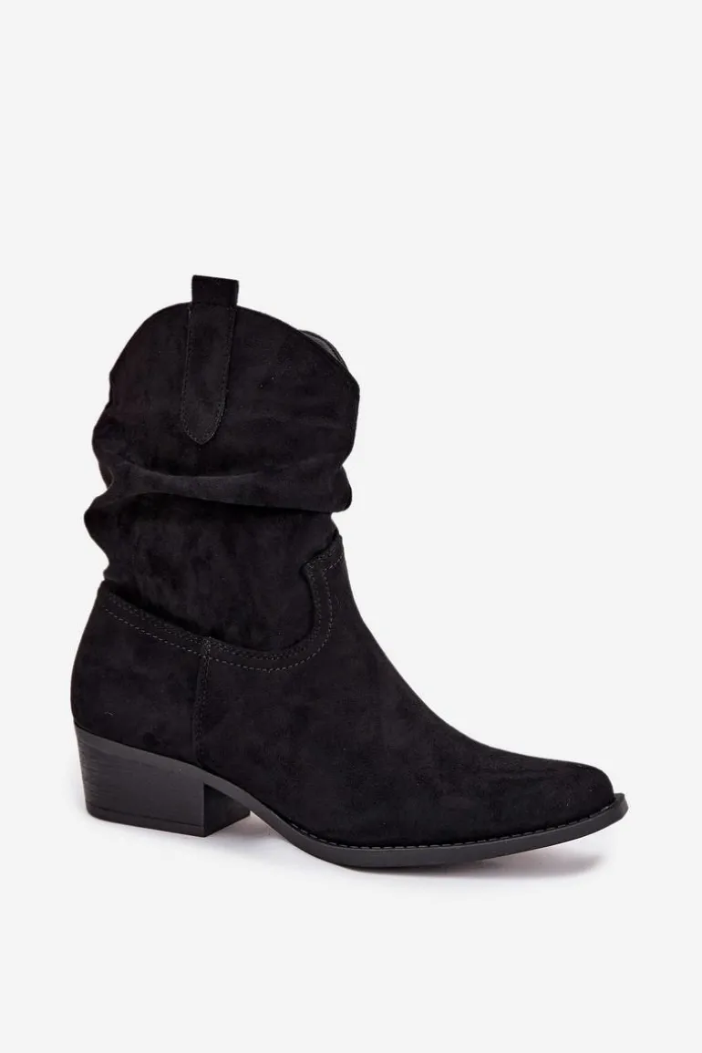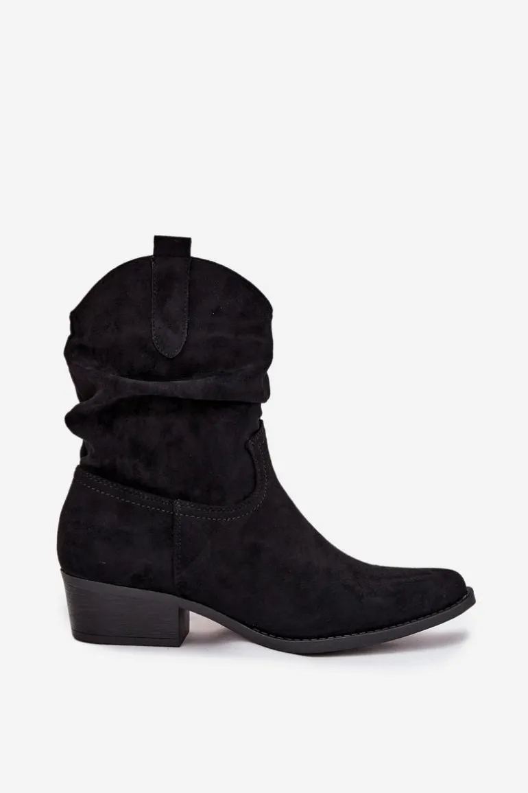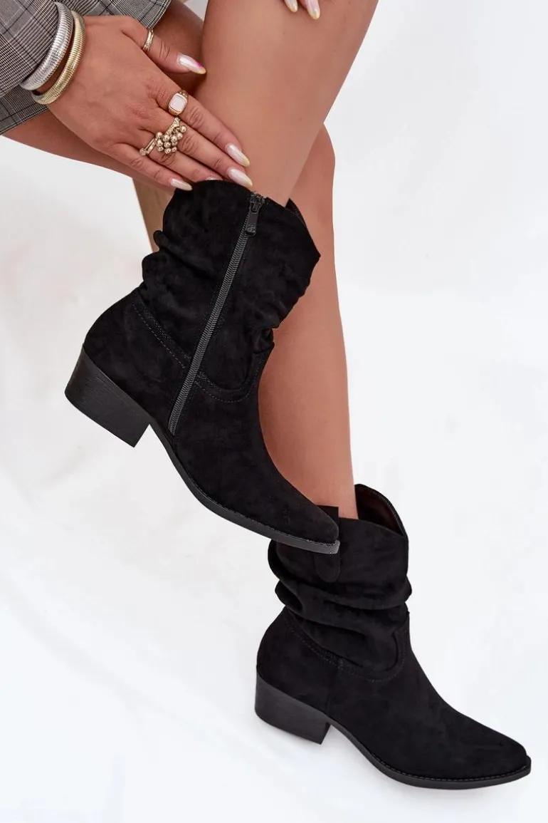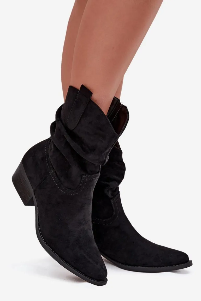 Botki Damskie Na Niskim Obcasie Z Marszczeniem Czarne Adena