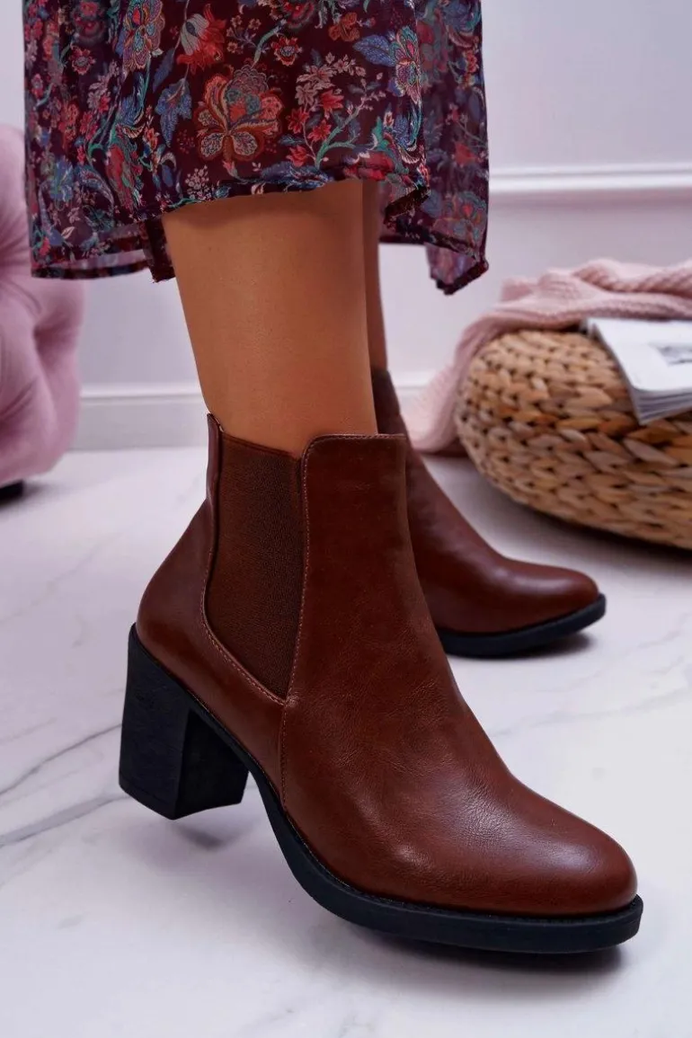 Botki Damskie Na Obcasie Brązowe Ergost
