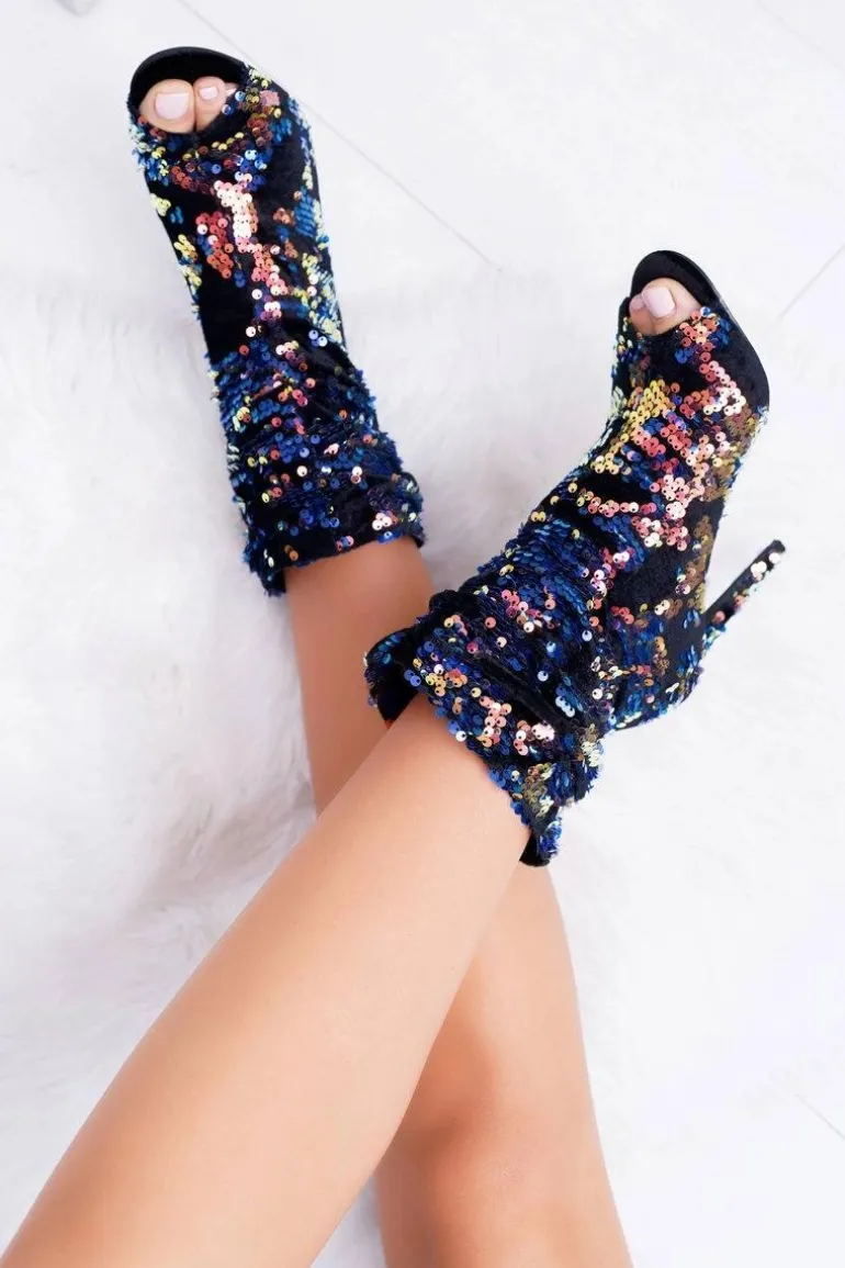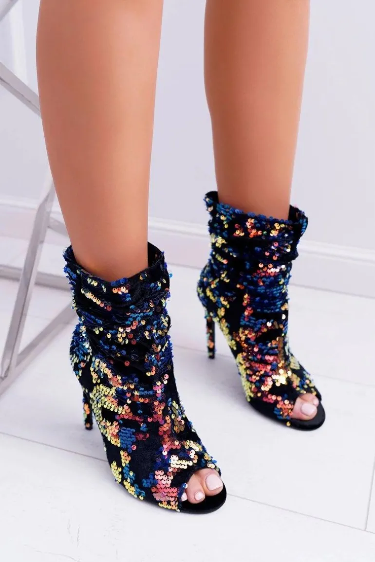 Botki Damskie Na Obcasie Eleganckie z Cekinami Opalizujące Harley