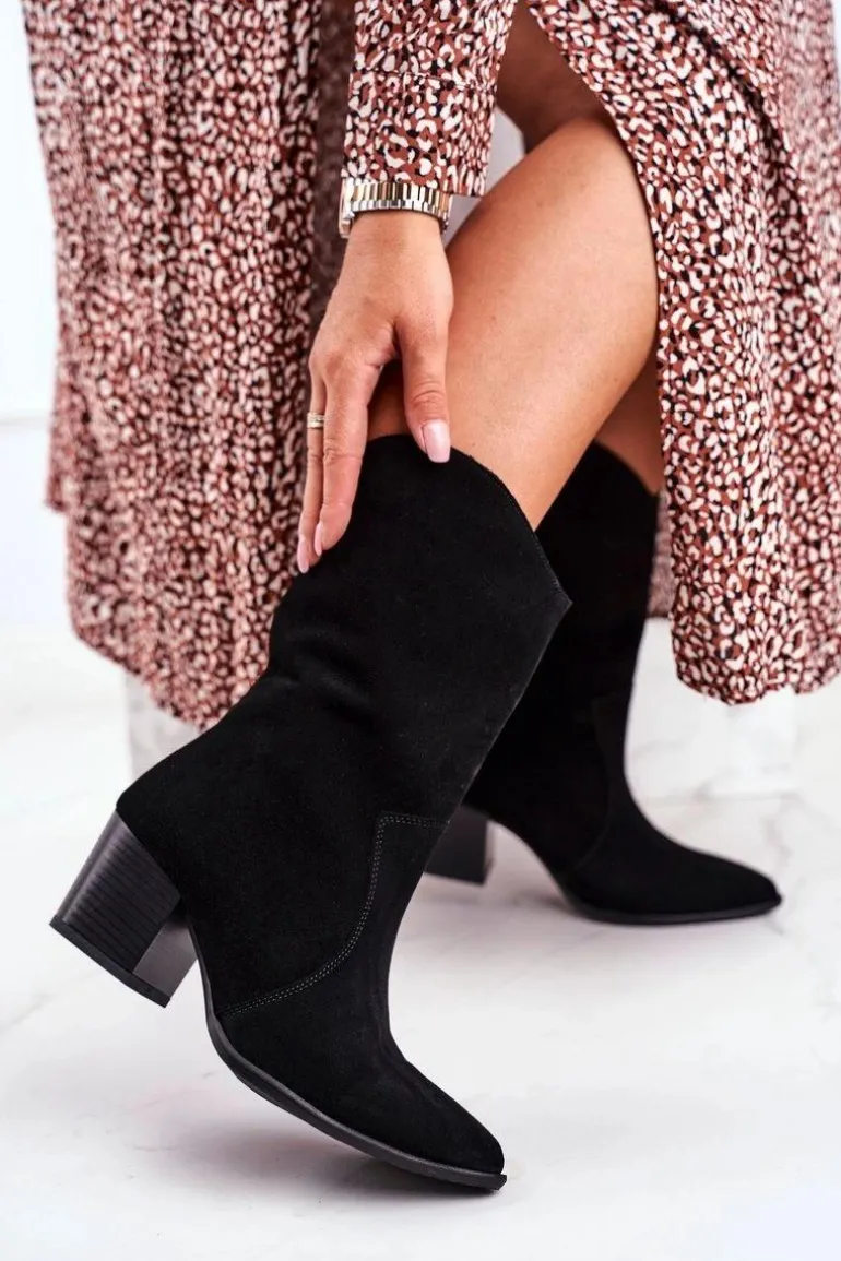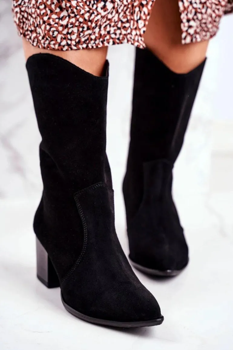 Botki Damskie Na Obcasie Skóra Nubuk Czarne Nicole 2580
