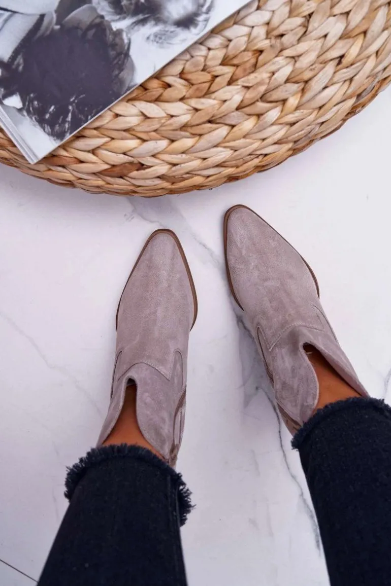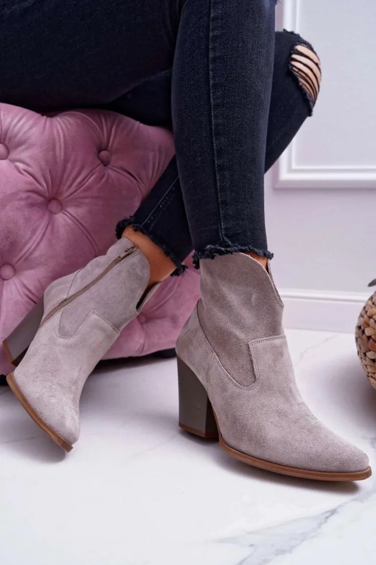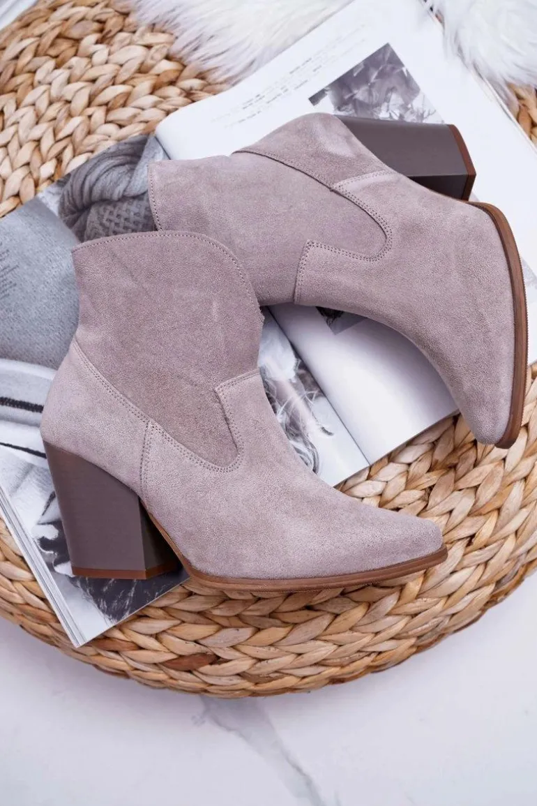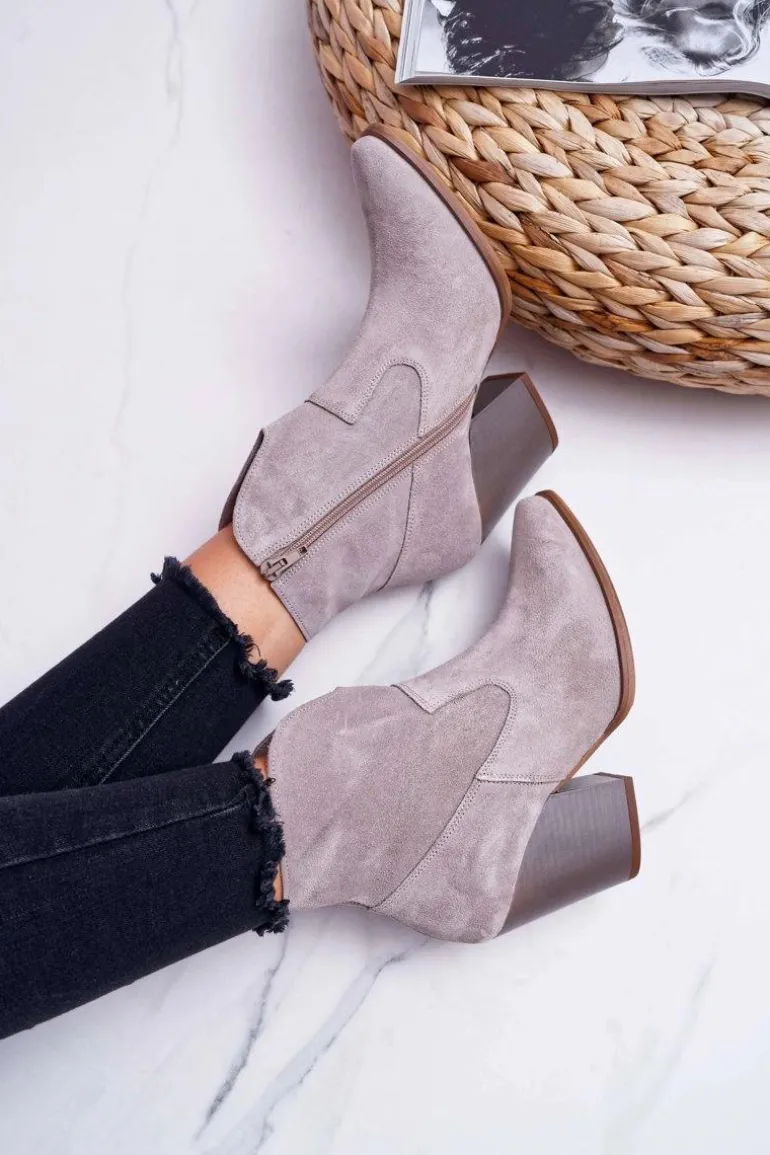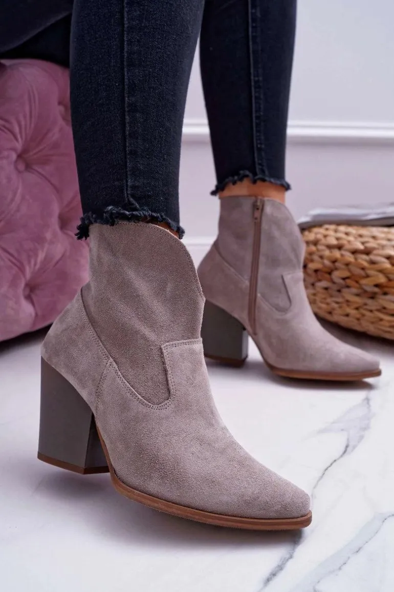 Botki Damskie Na Obcasie Skóra Zamsz Jasne Cappuccino Nicole 2433