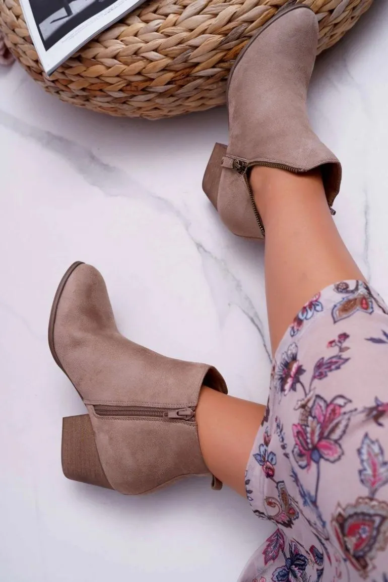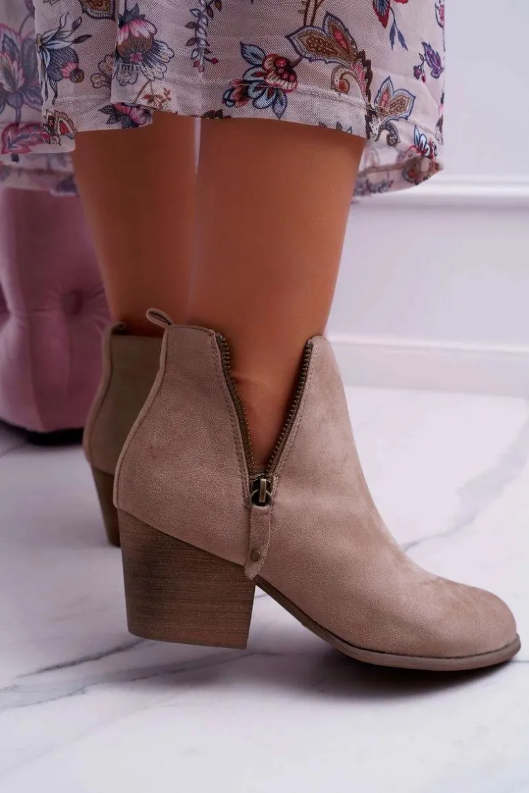 Botki Damskie Na Obcasie Suwak Zamszowe Beżowe Farre