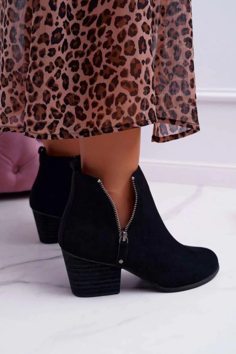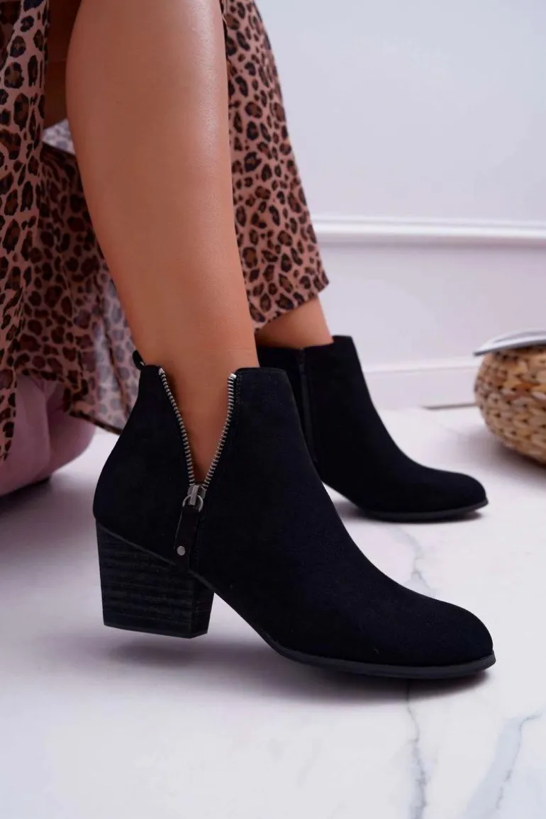 Botki Damskie Na Obcasie Suwak Zamszowe Czarne Farre