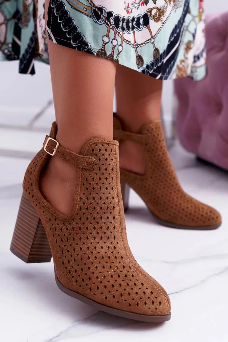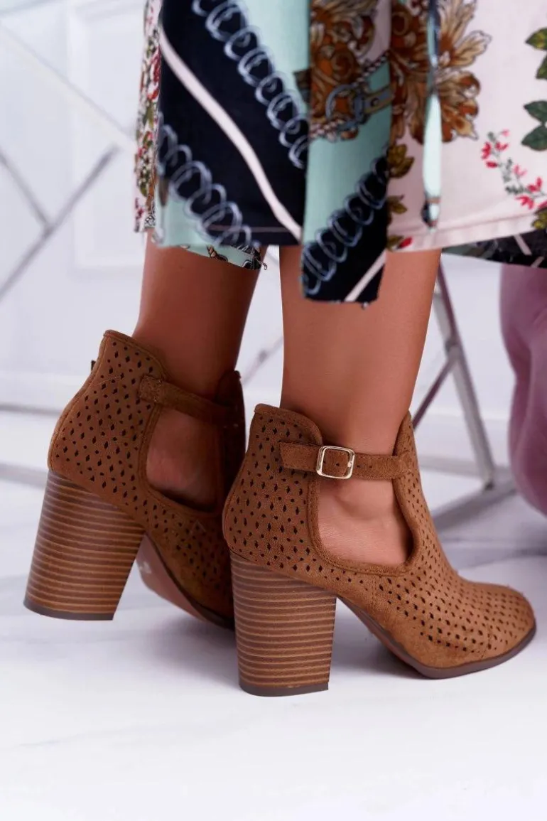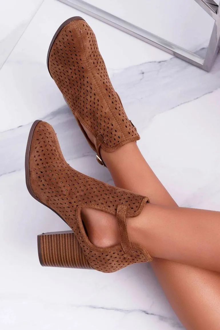 Botki Damskie Na Obcasie Wiosenne Ażurowe Camel GoodDay