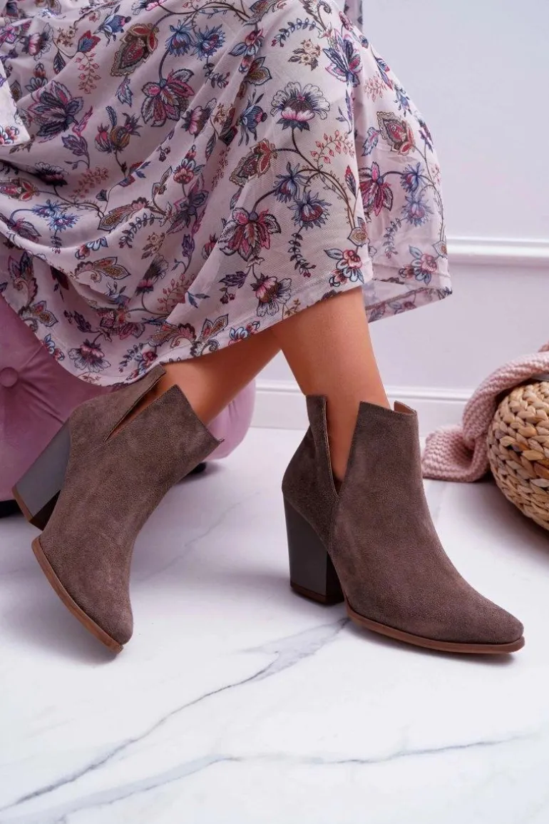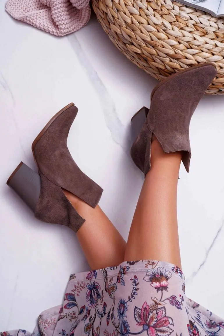 Botki Damskie Na Obcasie Wiosenne Skóra Zamsz Ciemne Cappuccino Nicole 2430