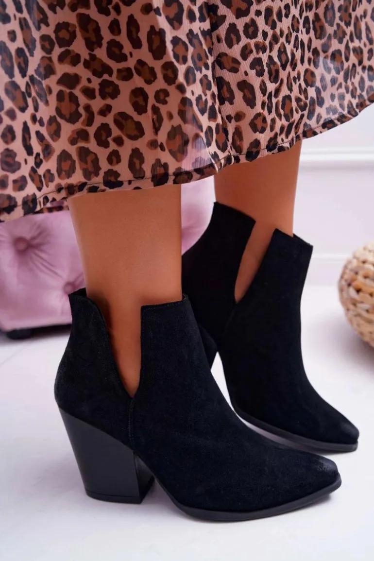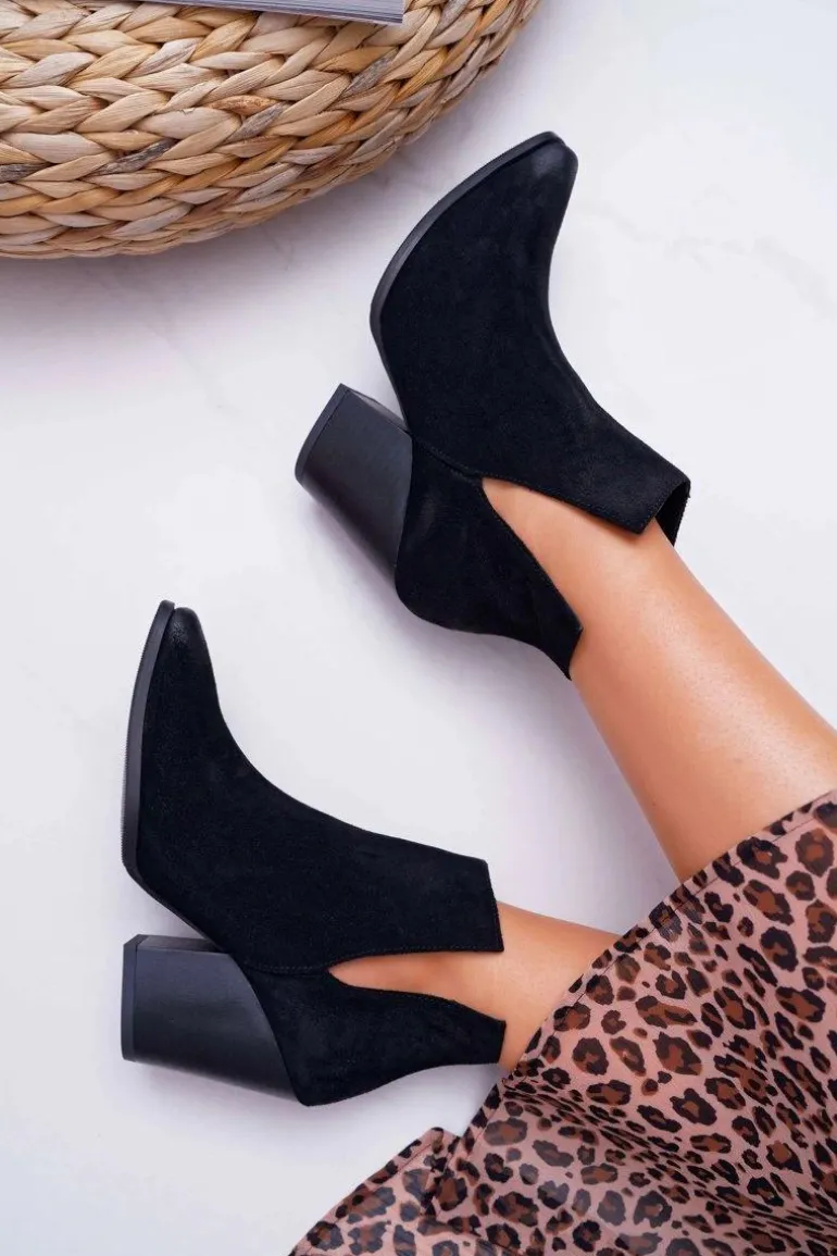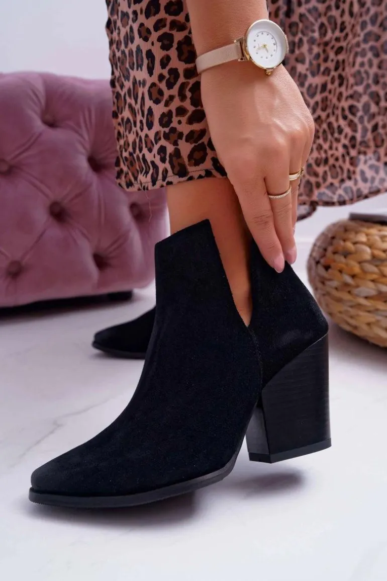 Botki Damskie Na Obcasie Wiosenne Skóra Zamsz Czarne Nicole 2430