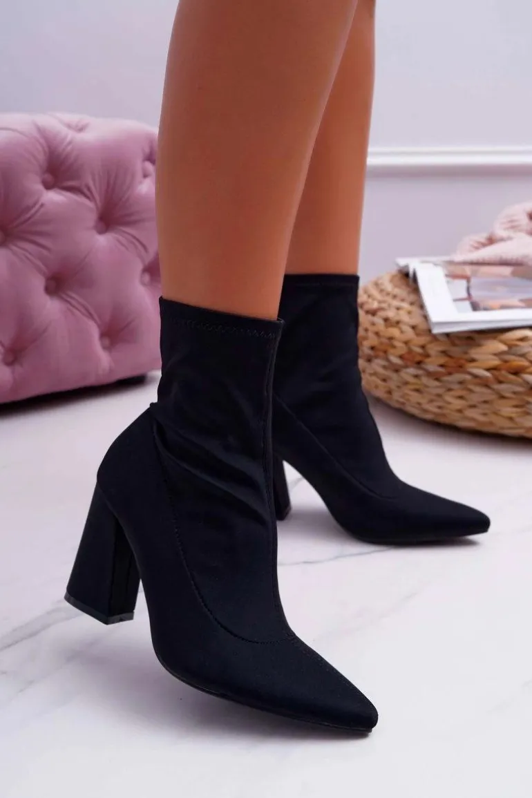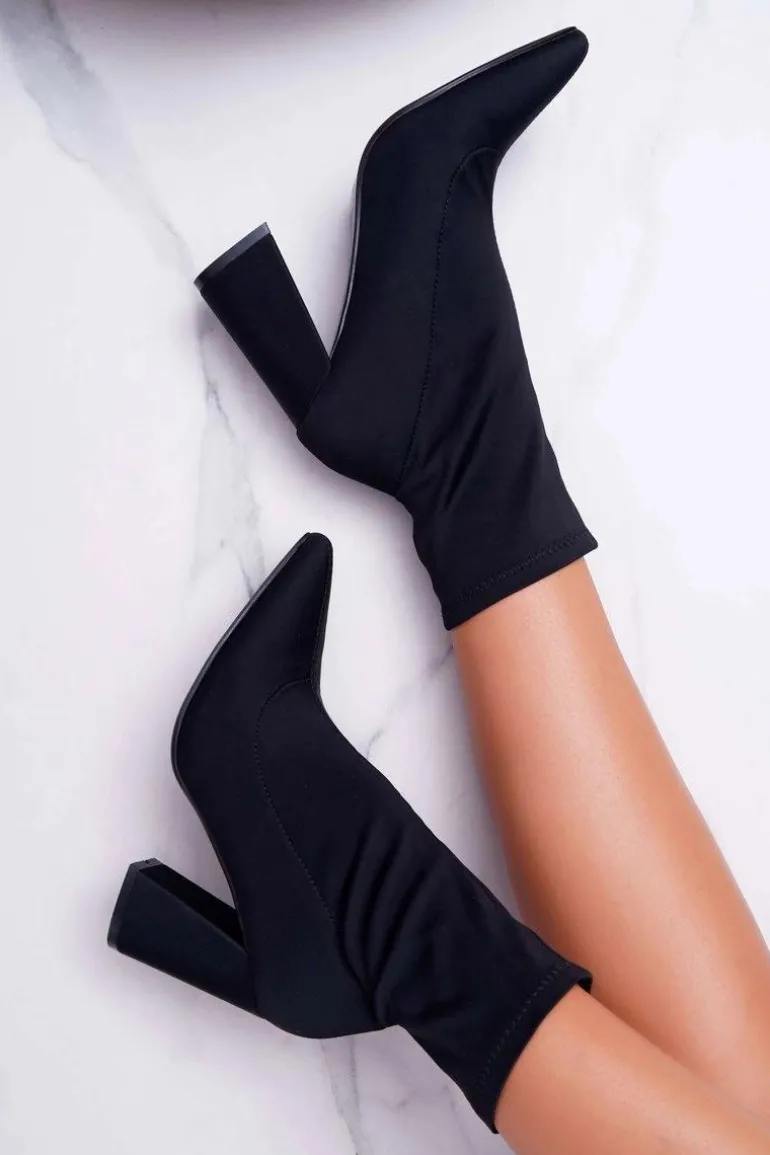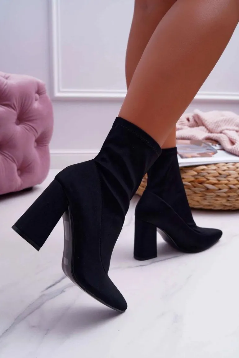 Botki Damskie Na Obcasie Wsuwane Czarne Pontiac